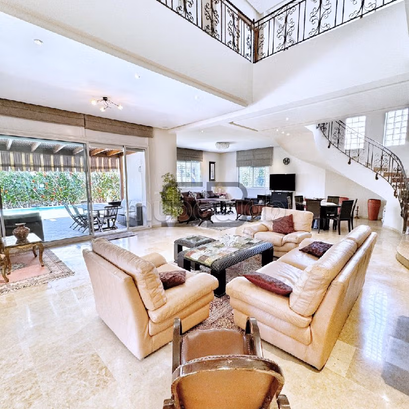 Découvrez cette somptueuse villa meublée de 823 m² habitables, implantée sur un terrain de 876 m², située dans un quartier résidentiel prisé de Bouskoura. Ce bien exceptionnel, conçu avec des matériaux haut de gamme et une attention particulière aux détails, offre un cadre de vie élégant et confortable.