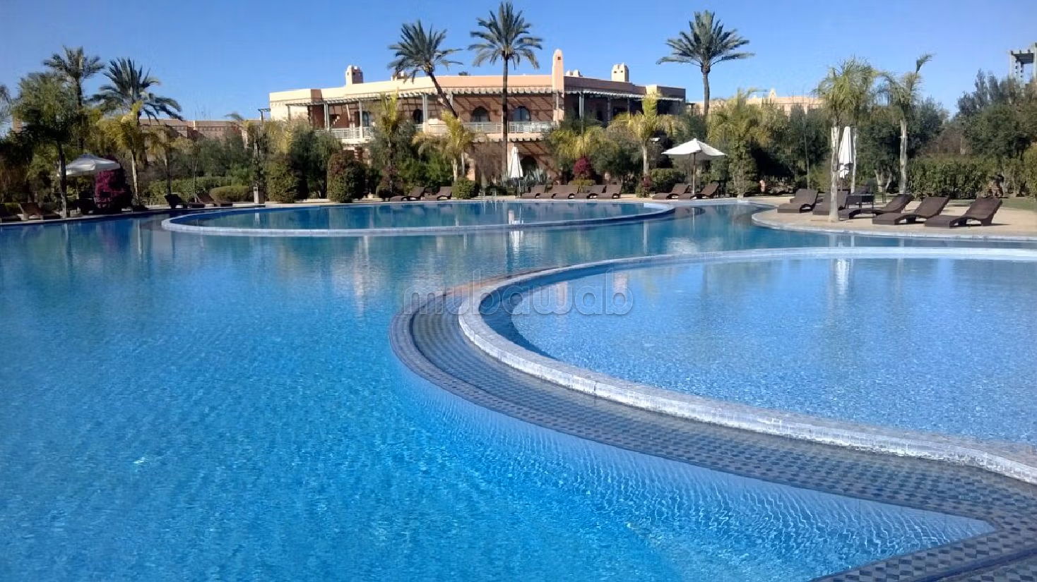 Magnifique appartement à louer à la Palmeraie Marrakech, très ensoleillé avec une belle terrasse et sans vis à vis, au 1er étage d'une superficie de 90 m², dans une résidence calme et sécurisée avec 3 piscines, grand jardin et beaucoup d’espaces verts , il se compose de :