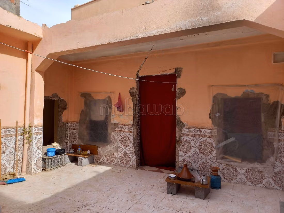 Riad en état moyen, entièrement à rénover. Possibilité de réaliser une habitation complète avec 3 chambres, chacune avec salle de douche/ WC. Dans un beau derb, dans un quartier recherché. Accès facile, près des Tombeaux saadiens, commerces, restaurants et marché. Idéal pour pied-à-terre.