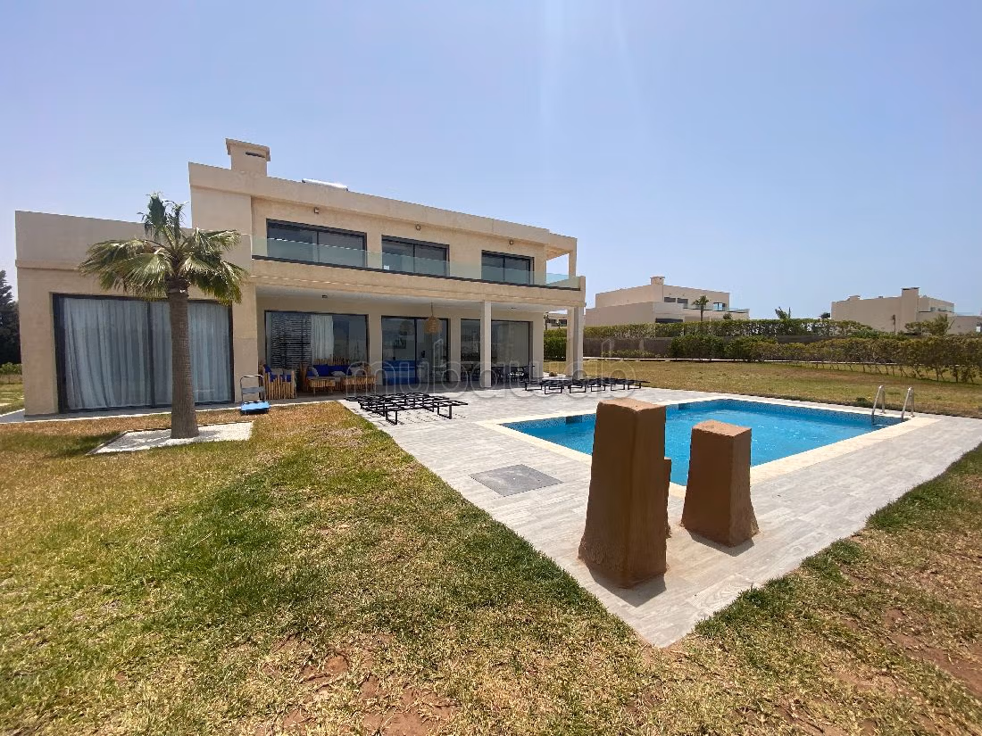 Au coeur d’une résidence sécurisée privée et gardée cette maison dispose de son terrain de 1500 m2 et de sa propre piscine, posée à l’ouest elle est en première ligne de la résidence et dispose de la vue mer sur les iles d’Essaouira Dés l’entrée par une large porte, l’harmonie des volumes et la qualité générale donne une belle impression, un vaste salon avec cheminée ouverte et un large espace salle à manger, donnant sur la terrasse piscine grâce aux baies vitrées situées sur toute la longueur de la pièce, une cuisine équipée et une arrière cuisine complète cet espace de vie. Une suite avec une salle de bain est également au rez-de-chaussée, sa large baie vitrée donne sur la grande terrasse piscine. Un toilette invités avec un lavabo complète ce rez-de-chaussée. En prenant le large escalier vous accéderez à un grand couloir distribuant les trois chambres de l’étage qui disposent chacune de sa salle de bains et de nombreux rangements, une très grande terrasse courant sur toute la longueur de la maison permet de jouir d’une terrasse pour chaque chambre et d’une magnifique vue sur la baie est les iles de Mogador. L’ensemble de la maison est climatisée et chaque pièce dispose de son réglage. La piscine d’une dimension de 84 M est située sur la large terrasse de 70 m2. Le tout est titrée et n’a pas besoin d’AVNA. La résidence dans laquelle est la villa dispose d’un service de réception et de gardiennage 24/24H ainsi que de jardiniers pour entretenir les jardins. Les charges mensuelles sont d’environ 400. N’hesitez pas à poser vos questions.