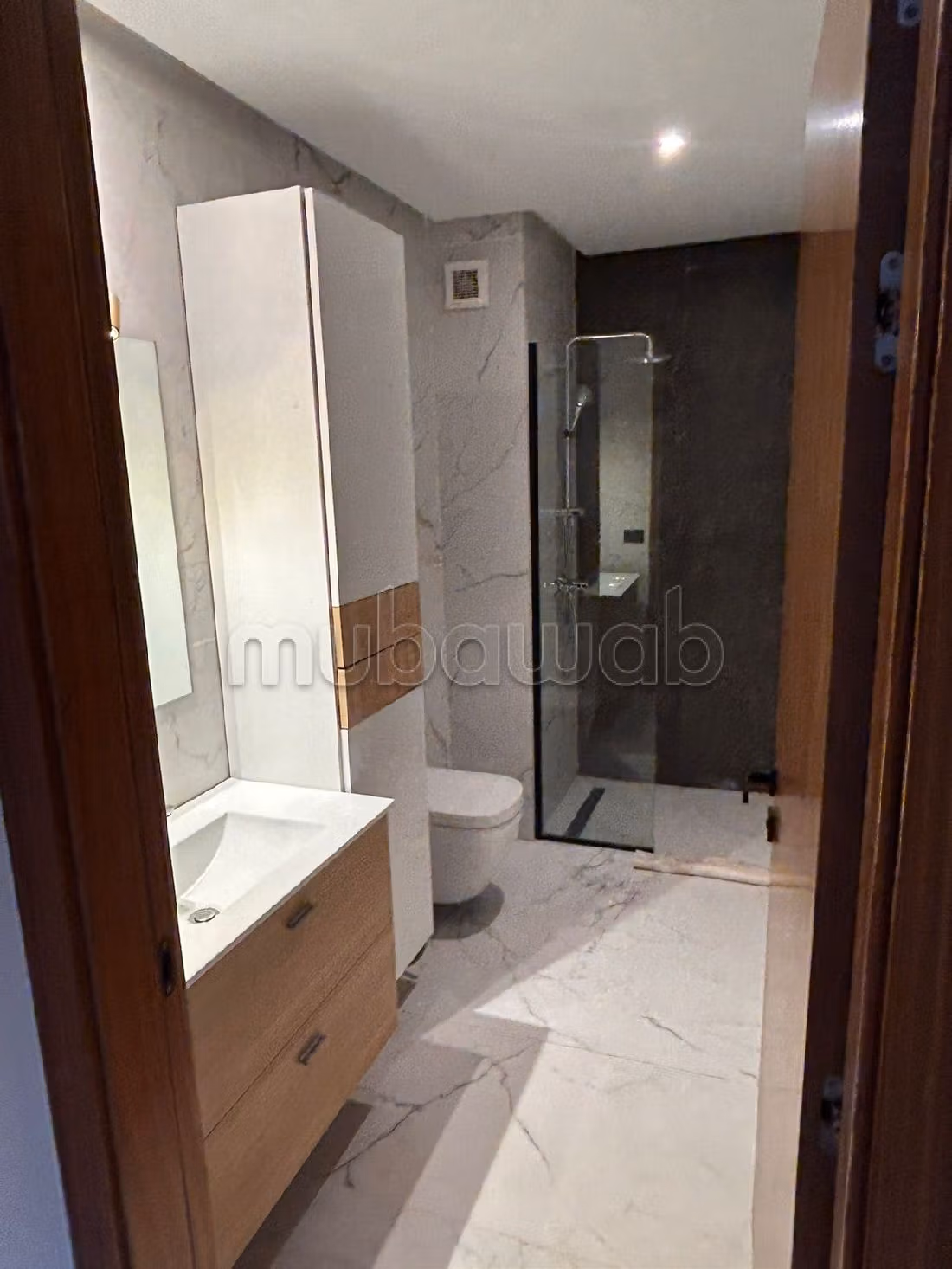 Contactez-nous pour visiter cet appartement en location à Casablanca. Confort et sécurité avec service de conciergerie et climatisation. Espaces verts et ascenseur. Spacieux salon européen.