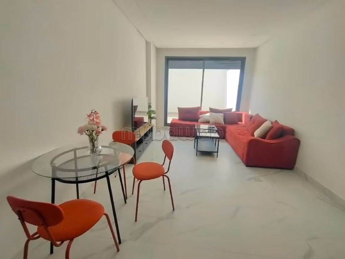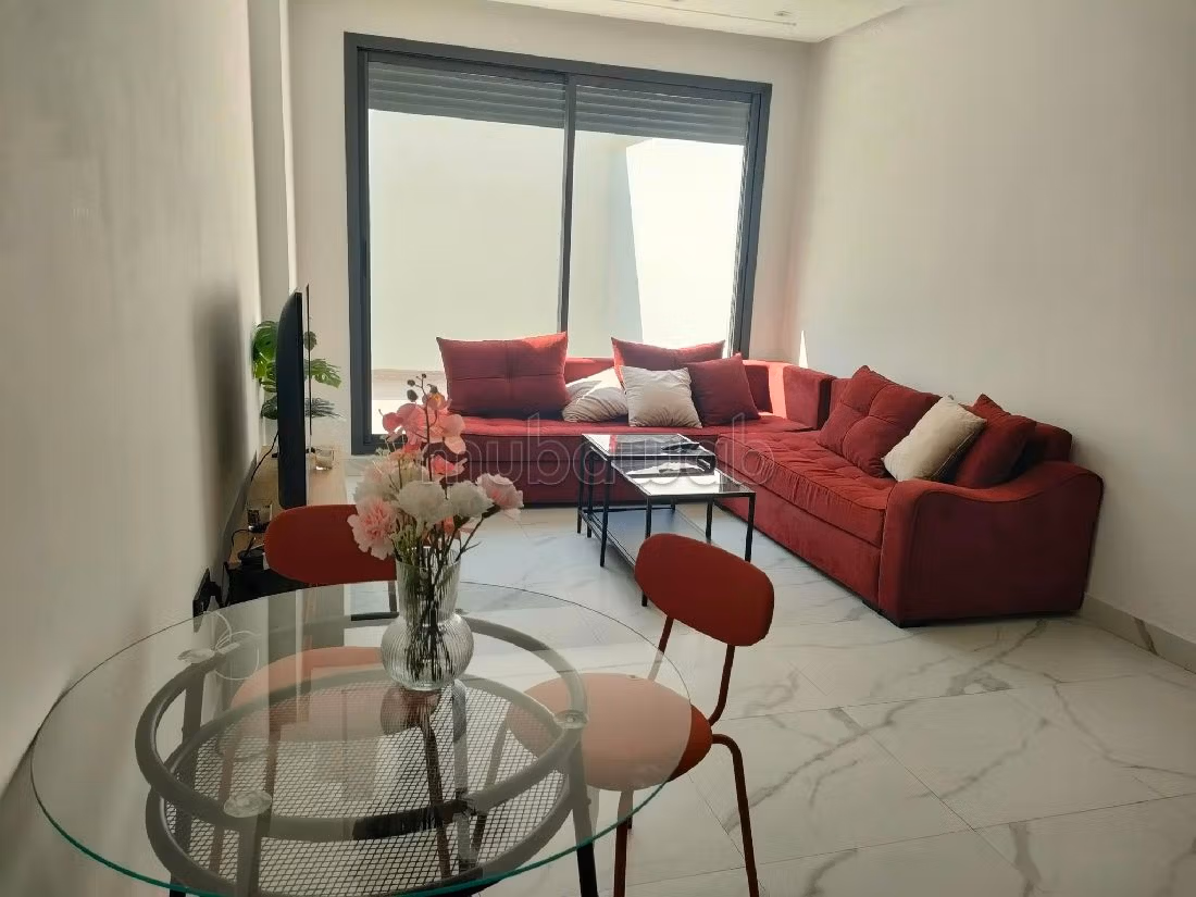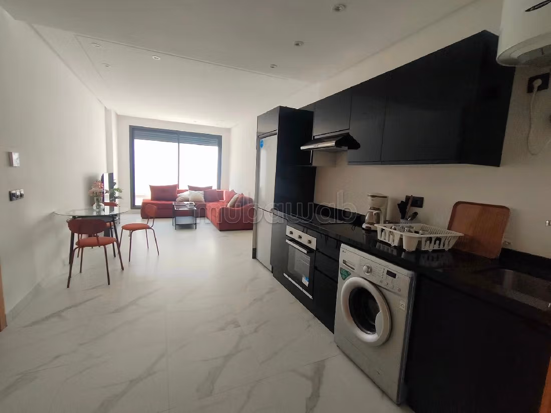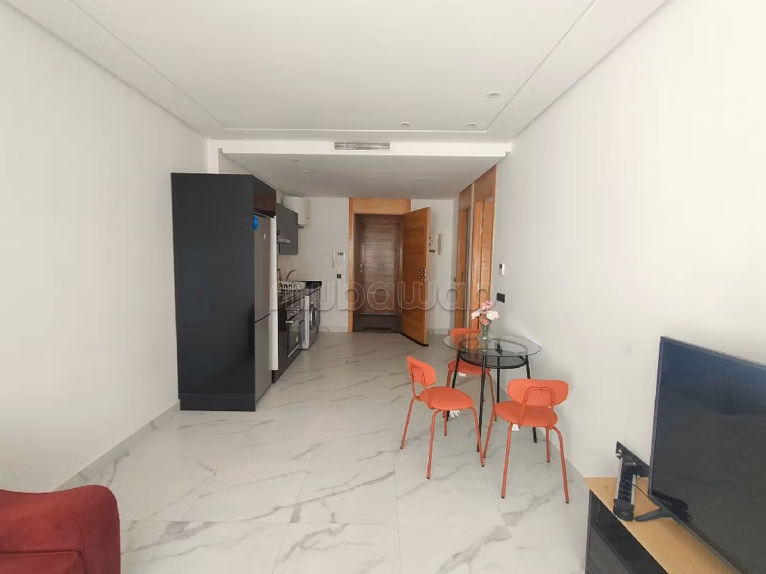 Studio neuf meublé et équipé, situé au Quartier Ferme Bretone, proche station TRAMWAY, Casa Finance City, dans une Résidence sécurisée avec ascenseur place au parking sous sol, superficie 64m², au 1 er étage, 1 Salon 1 cuisine américaine équipée 1 chambre à coucher avec placards, 1 SDB avec douche terrasse climatisation ensoleillé