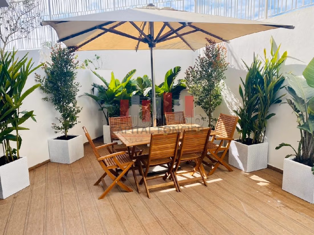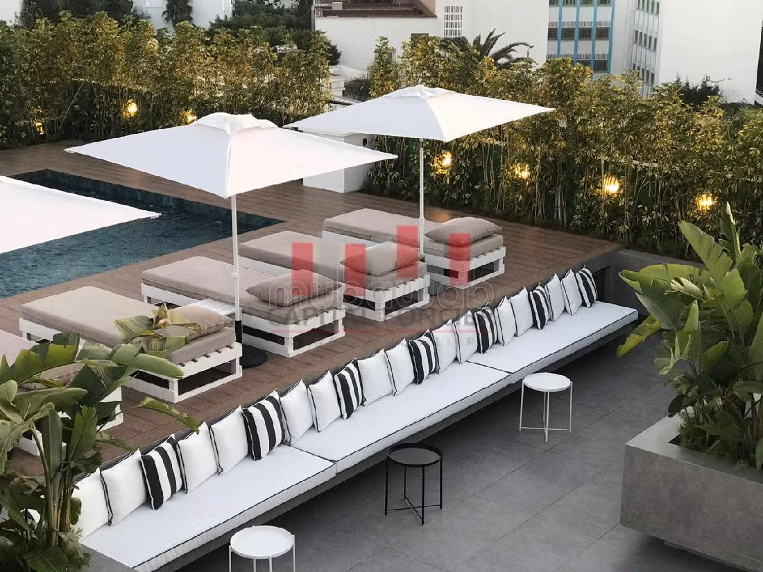 PALMIERS : Appartement meublé sublime dans une belle résidence de haut standing avec un Roof top avec piscine et salle de sport d'une superficie de 147 m2 dont 27 m2 de terrasse. Il se compose d'un toilette invité, d'une cuisine semi ouverte attenante à la salle à manger, d'un salon avec une cheminée à l'ethanol, de 2 chambres avec dressing, de 2SDB, Climatisation centralisé, ...PALMIERS : Appartement meublé sublime dans une belle résidence de haut standing avec un Roof top avec piscine et salle de sport d’une superficie de 147 m2 dont 27 m2 de terrasse. Il se compose d’un toilette invité, d’une cuisine semi ouverte attenante à la salle à manger, d’un salon avec une cheminée à l’ethanol, de 2 chambres avec dressing, de 2SDB, Climatisation centralisé, place de parking, prestations haut de gamme. Unique à Casablanca.