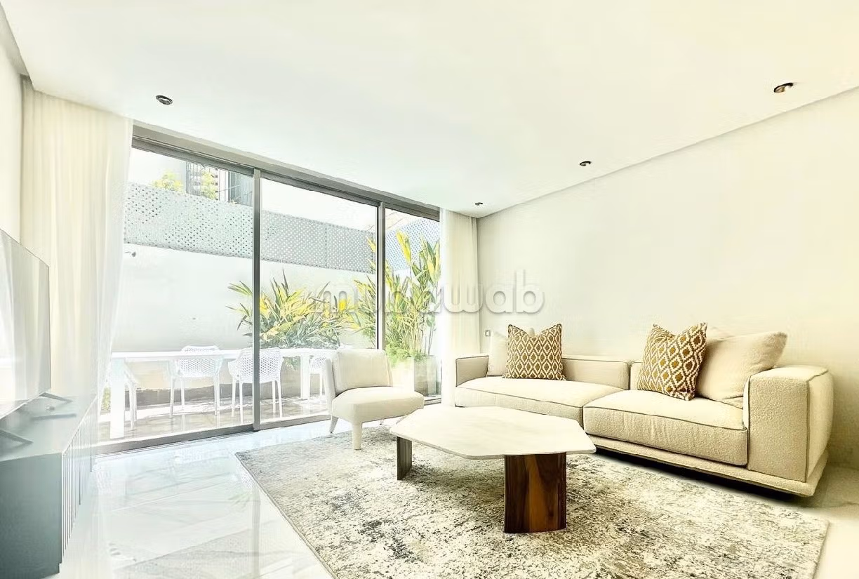 appartement haut standing, meublé et moderne, situé dans une prestigieuse résidence. Avec une surface habitable de 55 m² et une grande terrasse de 20 m², cet appartement lumineux offre un séjour élégamment meublé donnant sur un espace extérieur aménagé, comprenant une salle à manger en plein air et une cuisine américaine entièrement équipée avec comptoir.