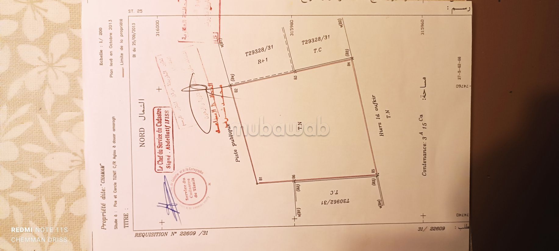 Beau terrain d'une superficie de 325 m², titré, constructible, 2 Façades, il se situe à 10 km de la province de Tiznit (jolie ville à 100 km au sud d'Agadir) et à 4 km de la plage d' Aglou, exactement au douar Amarahg, à une vingtaines de kilomètres se trouve aussi la plage de Mirleft, possibilité d'acquérir 100 ou 150 m².
