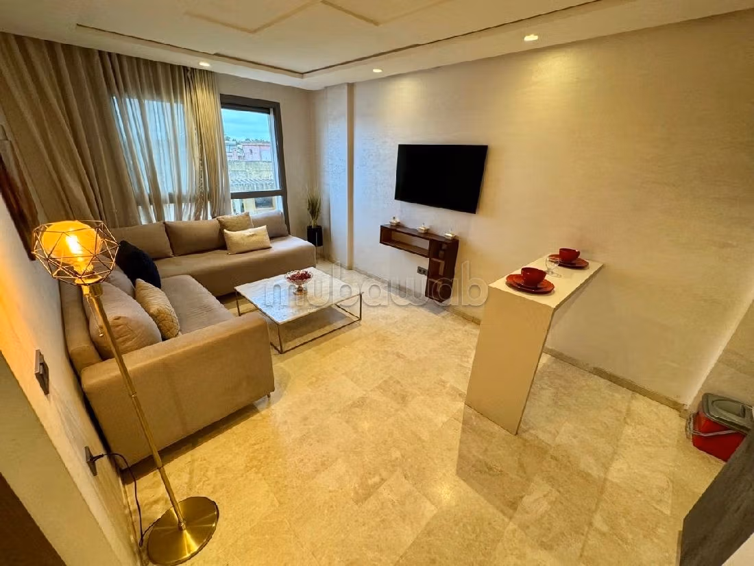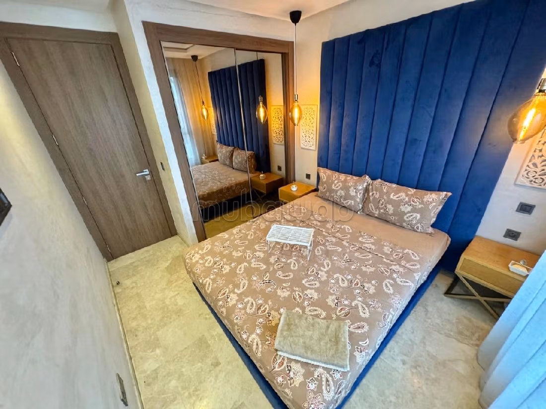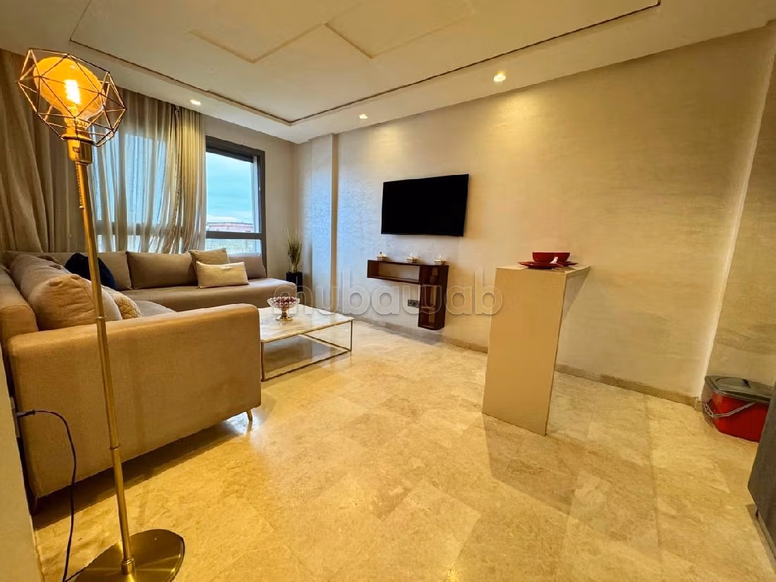 Louez l'appartement de vos rêves pour vos vacances. Prix 600 DH. 2 pièces, 1 salle de bains, superficie 50 m². 1 chambre. 2ème étage. Nouveau. Type de sol: Marbre. Nombres de nuits minimum 2. Décoration traditionnelle avec beau salon marocain. Le bien est également équipé d'une antenne parabolique et d'une porte blindée. La résidence est sécurisée.