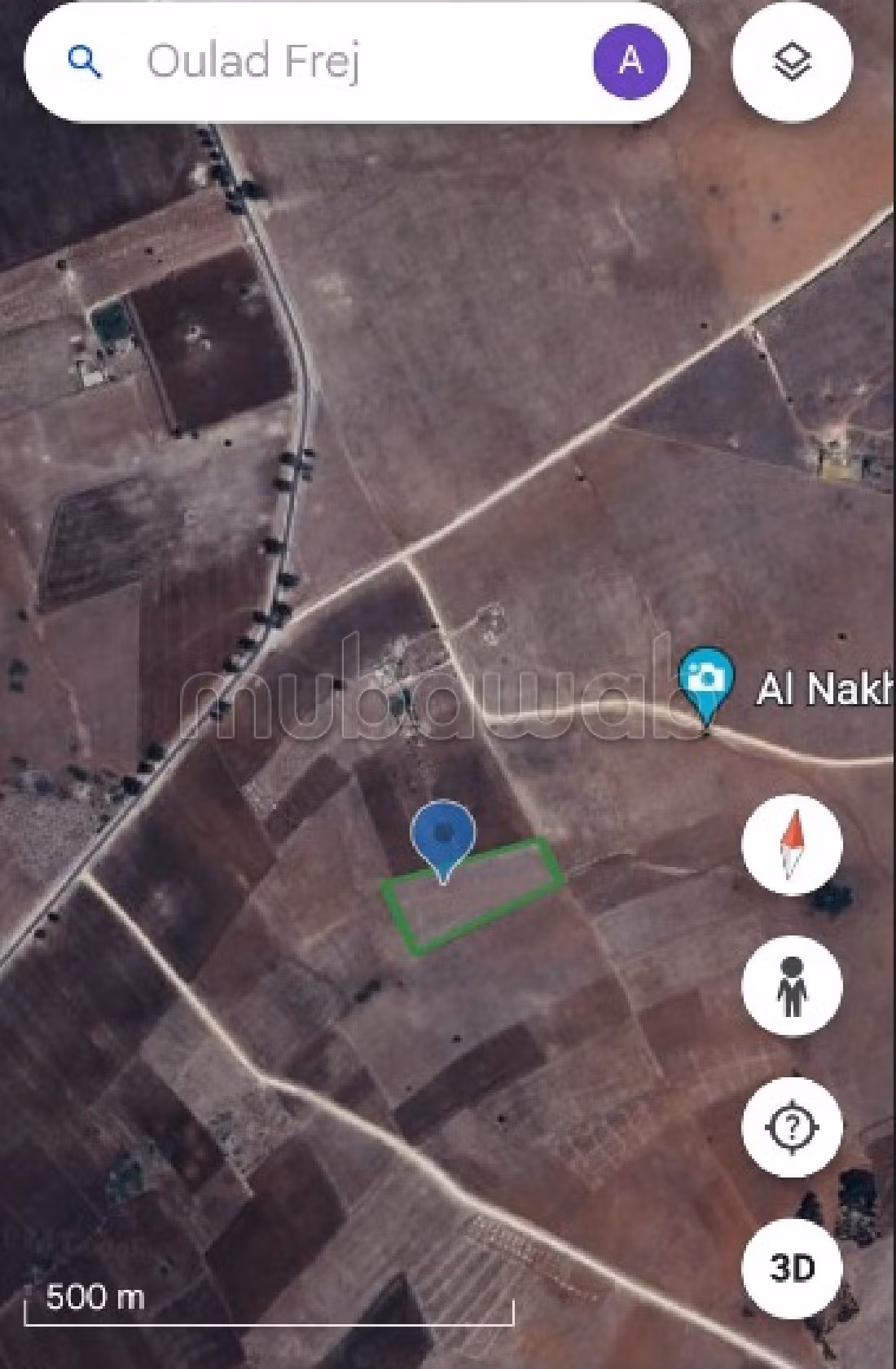 Terrain agricole à vendre d'une superficie de 10413 mètre carré à Douar Ouled Anaam, à 11 km d'Ouled frej, et à 200 mètres de la route régionale numéro R303 entre Ouled frej et Casablanca.
