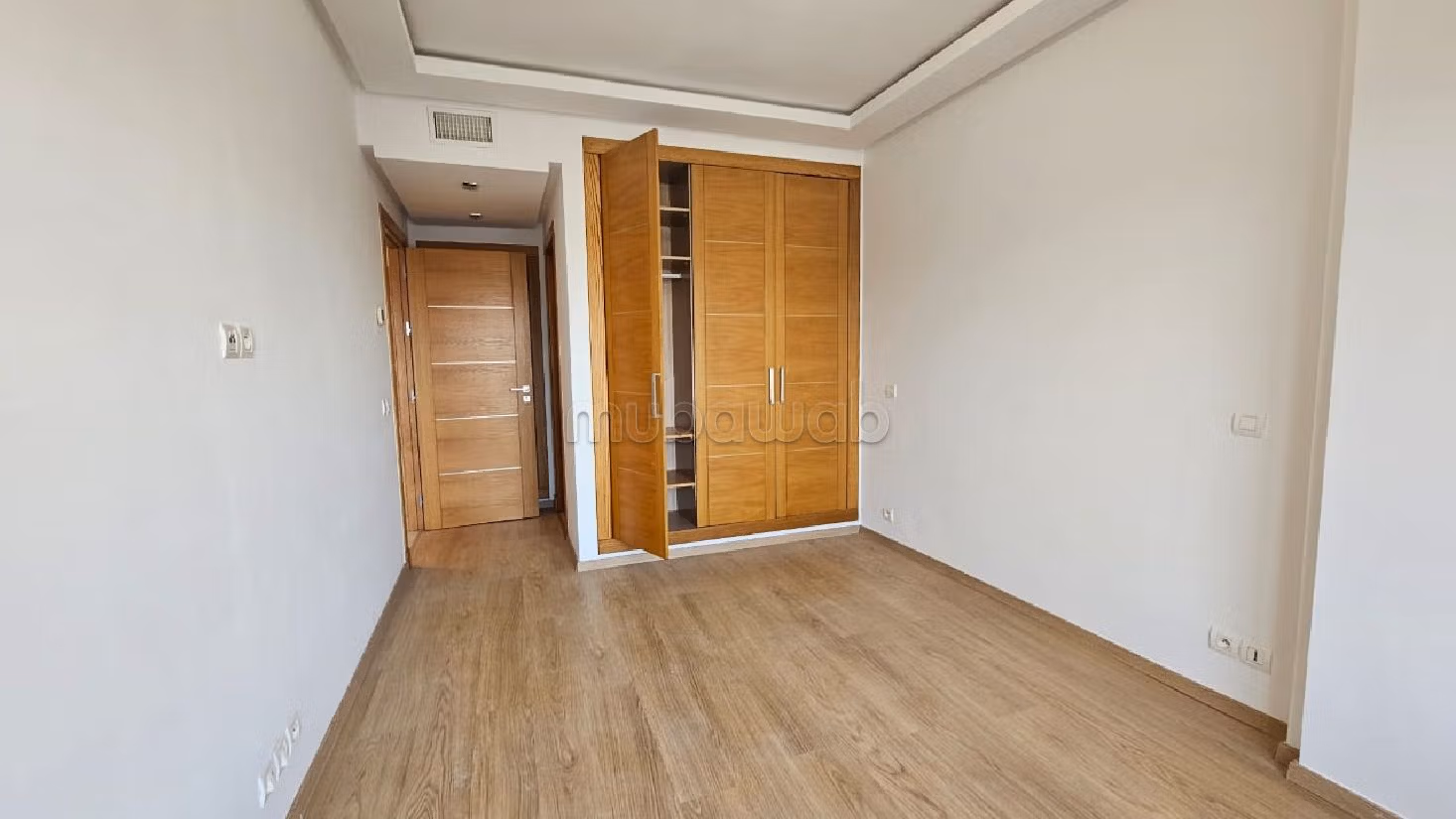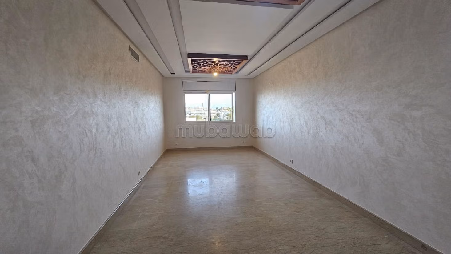 Haut de lagdal, un appartement de standing à louer au 2 éme étage dune superficie de 129 m² se composant dun salon ouvert , 3 chambres à coucher avec placards , un balcon, une cuisine bien équipée, deux cabines de douche, lave main invitées, une climatisation centralisée, un ascenseur et place au garage.