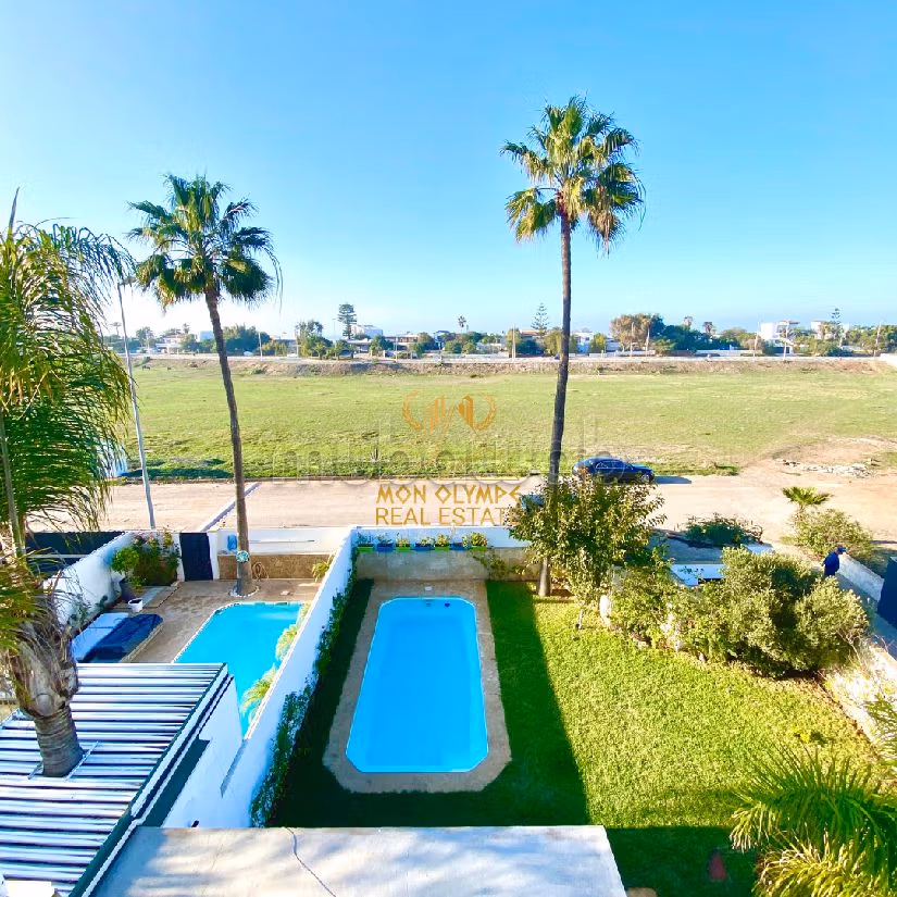 Venez découvrir cette élégante villa meublée de 335 m², située à Skhirat près de l'amphitrite en 2e tranche avec vue sur mer depuis l'étage. Cette propriété vous offre :