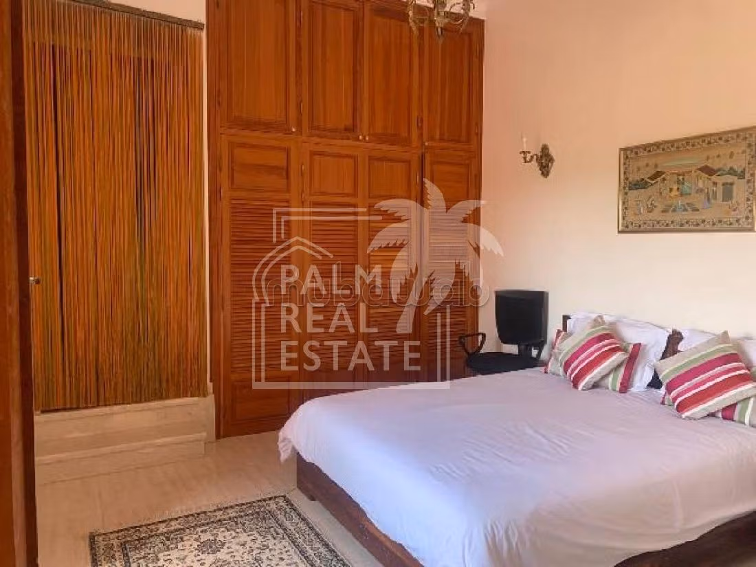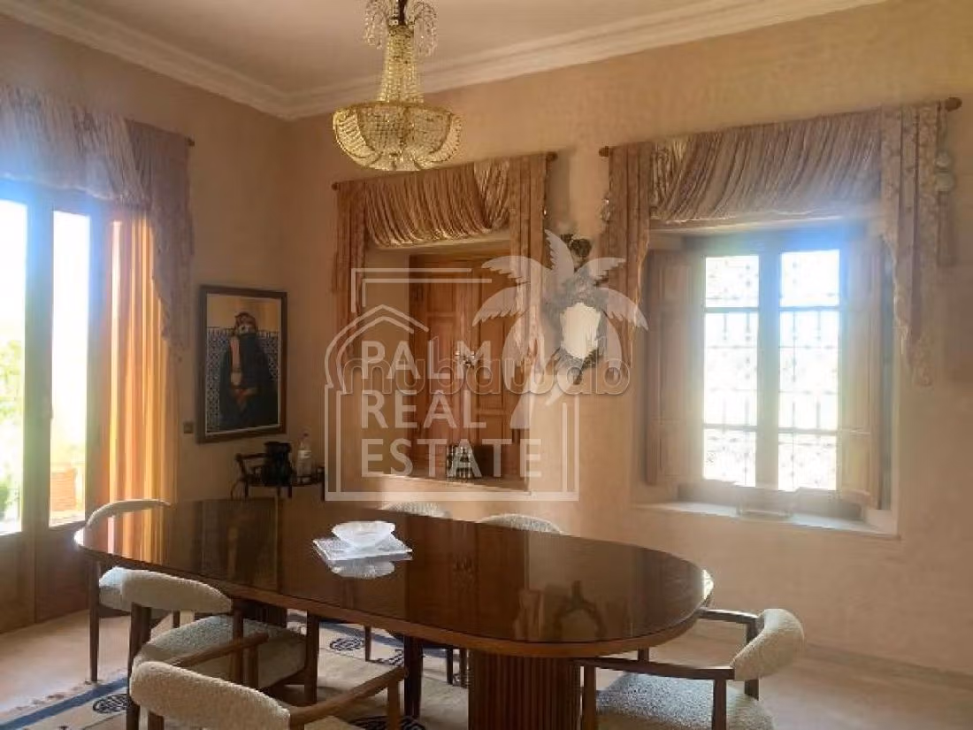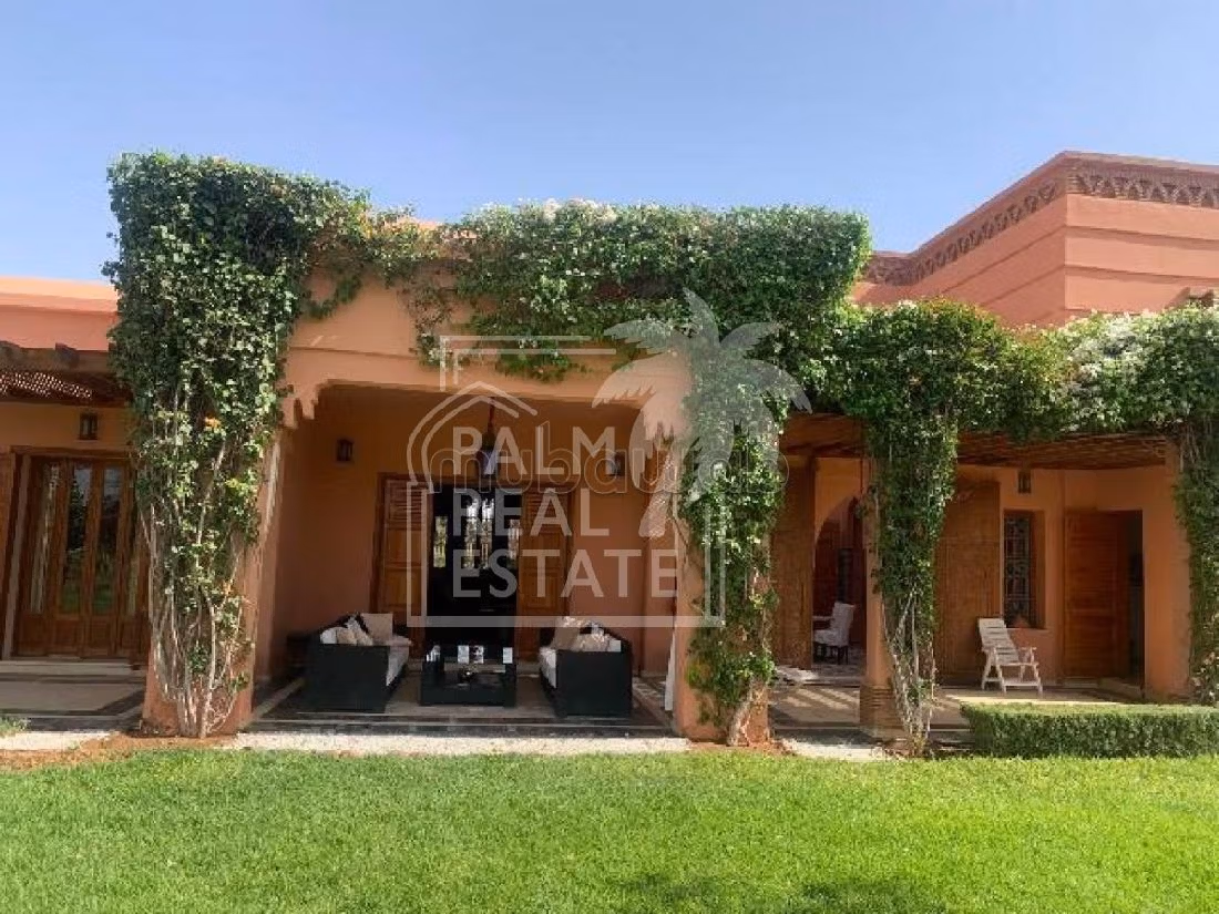 Saisissez l’opportunité que vous a dénichée Palm Real Estate et habitez un luxe sans pareil au cœur de la fameuse Palmeraie *bab atlas* de Marrakech.Est mise à votre disposition une villa élégante, dotée d’une architecture raffinée et de tous les équipements nécessaires à votre confort et bien-être quotidiens 4 chambres avec placards et salles de bain dont une Suite parentale avec salle de bains Double salon Cuisine équipée Coin salle à manger et pacio 3 salons Cheminée Ù‡Jardin place parking