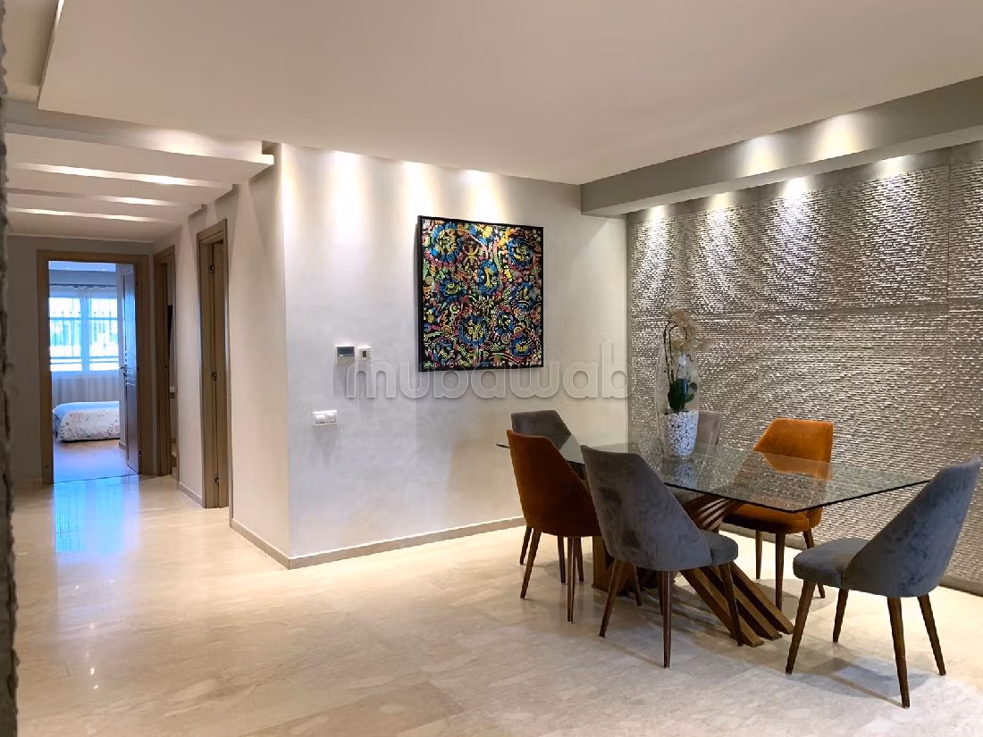 Ne laissez pas passer cet appartement à louer. Prix 15 500 DH. 4 pièces, 2 salles de bains privatives, 156 m². 3 chambres à coucher. 3ème étage. Moins de 5 ans. Type de sol: Marbre. Bien meublé.