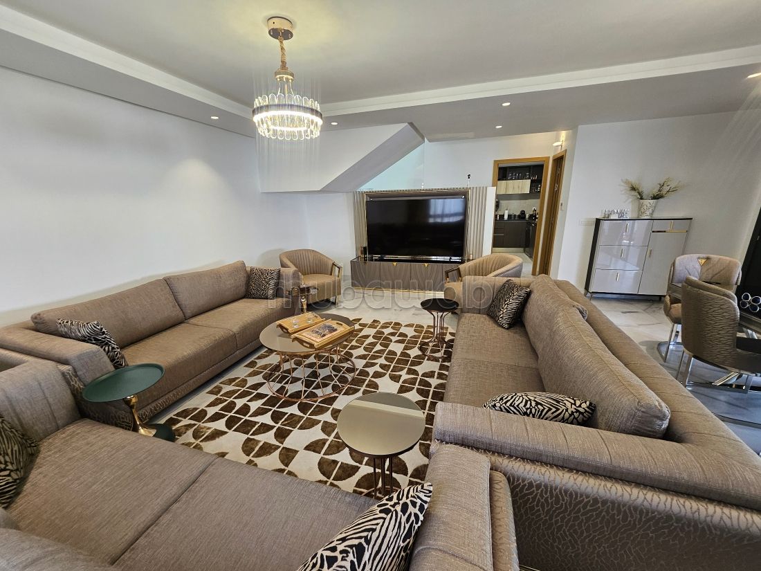 Agréable appartement à vendre. Prix 3 200 000 DH. 4 pièces, 2 salles de bains privatives, 236 m². 2 chambres à coucher. 2ème étage. Moins de 5 ans. Type de sol: Marbre. Profitez d'une vue magnifique sur la mer et du calme absolu avec fenêtres en double vitrage. Porte blindée.