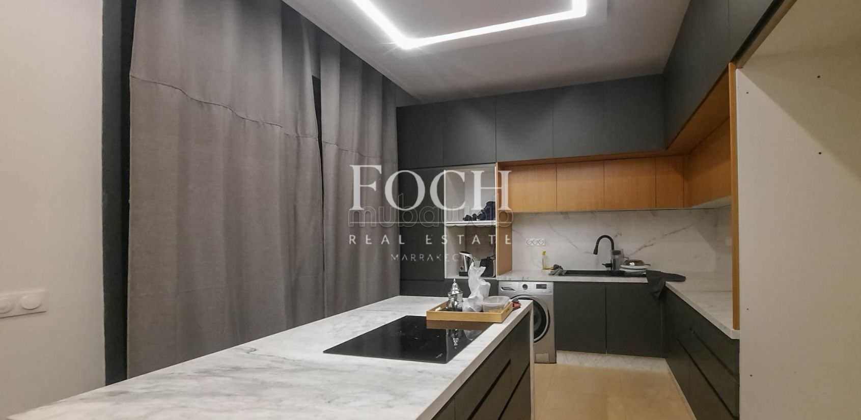 À l’extérieur, la propriété bénéficie d’un jardin arboré avec piscine privée, idéal pour profiter du climat ensoleillé de Marrakech et se détendre en toute tranquillité.
