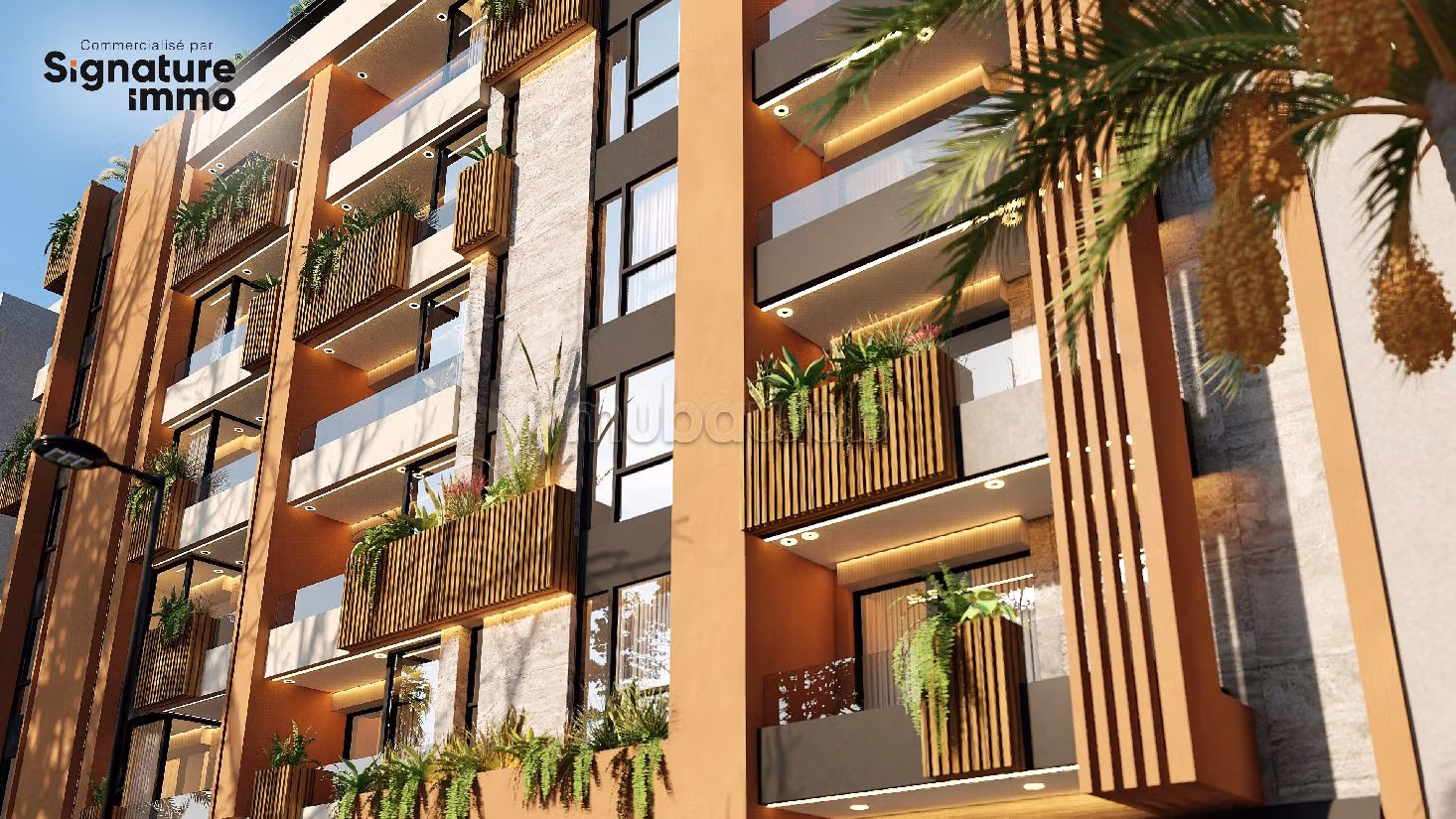 Ce projet exceptionnel est équipé d'une magnifique piscine au rooftop, une salle de sport, des piscines privatives adossées aux duplexs, ainsi que des locaux commerciaux pour les résidents désirant rentabiliser leur investissement.