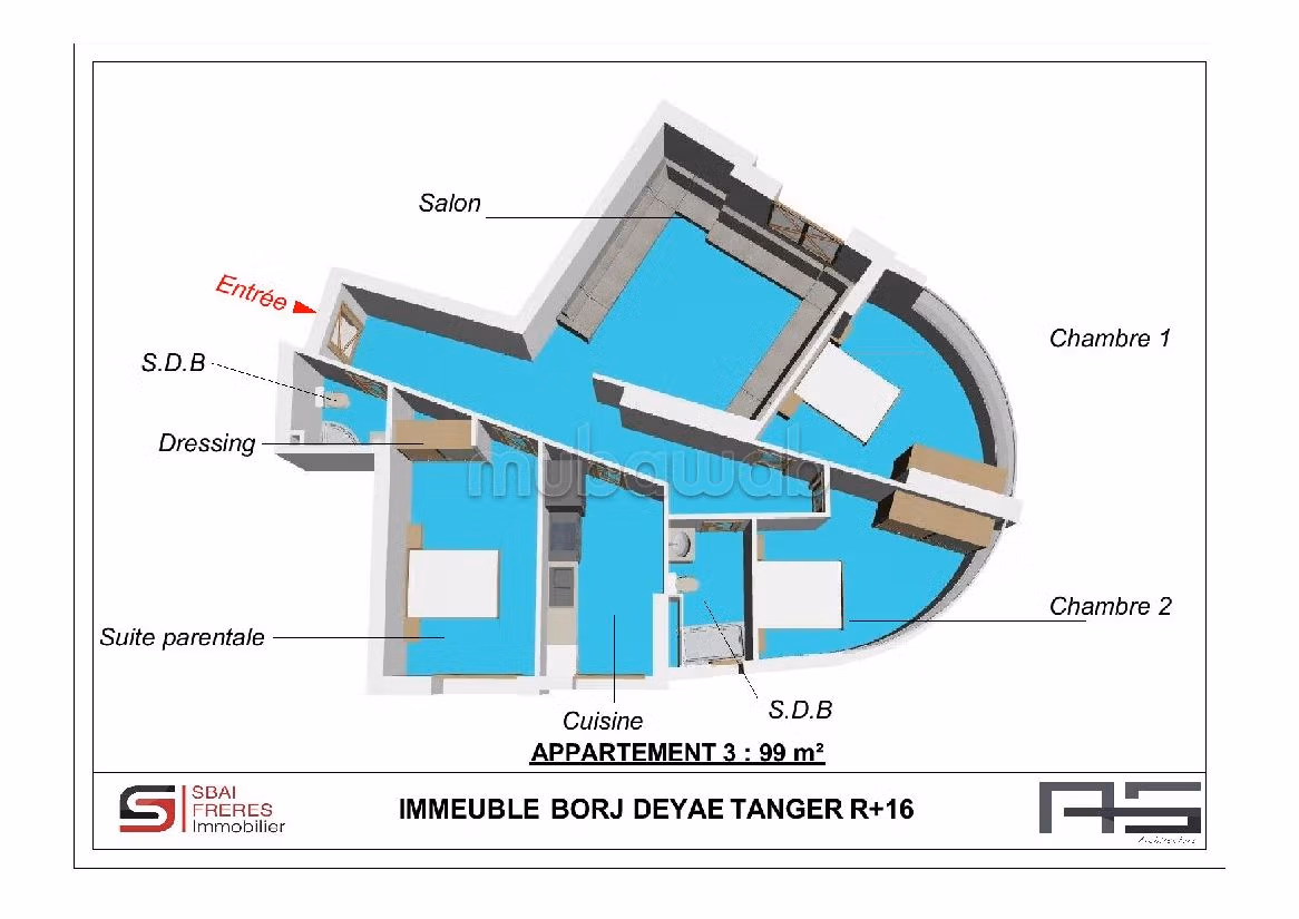 Contactez-nous si vous êtes intéressé par cet appartement à Tanger. Cuisine équipée.
