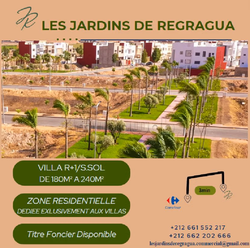 EQUIPEMENTS ENSEIGNEMENTS PRIVEES (ECOLE) LES JARDINS DE REGRAGUA-BERRECHID ENTRE 900-1015M2 avec 2 façades et de larges voies