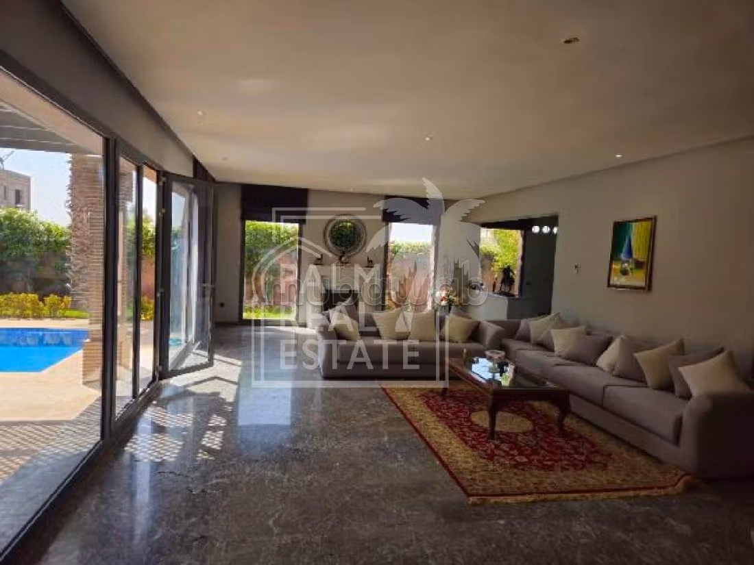 illa de luxe a louer vide avec piscine privative ,600m sur la route d'ourika .Elle se compose deux salons, coin salle à manger avec vue piscine, coin cheminée, une cuisine aménagée, Wc des invitées, 4 chambre a l'étage suite parentale avec une terrasse plein sud VUE PANORAMIQUE SUR LATLAS