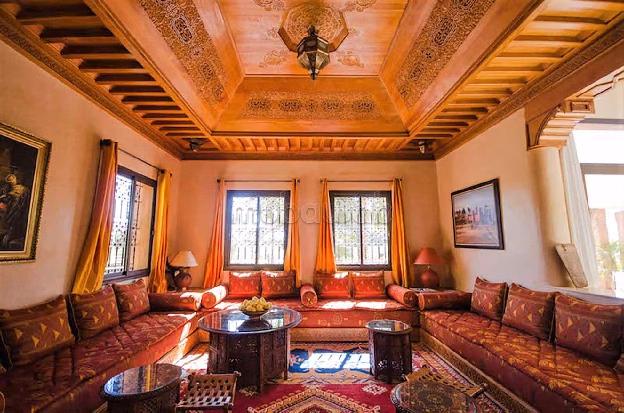 Questa meravigliosa villa è in vendita a Route de l'Ourika. Goditi il piacere di una splendida vista sulle montagne e del comfort del riscaldamento. Antenna parabolica e comodo salotto in stile marocchino.