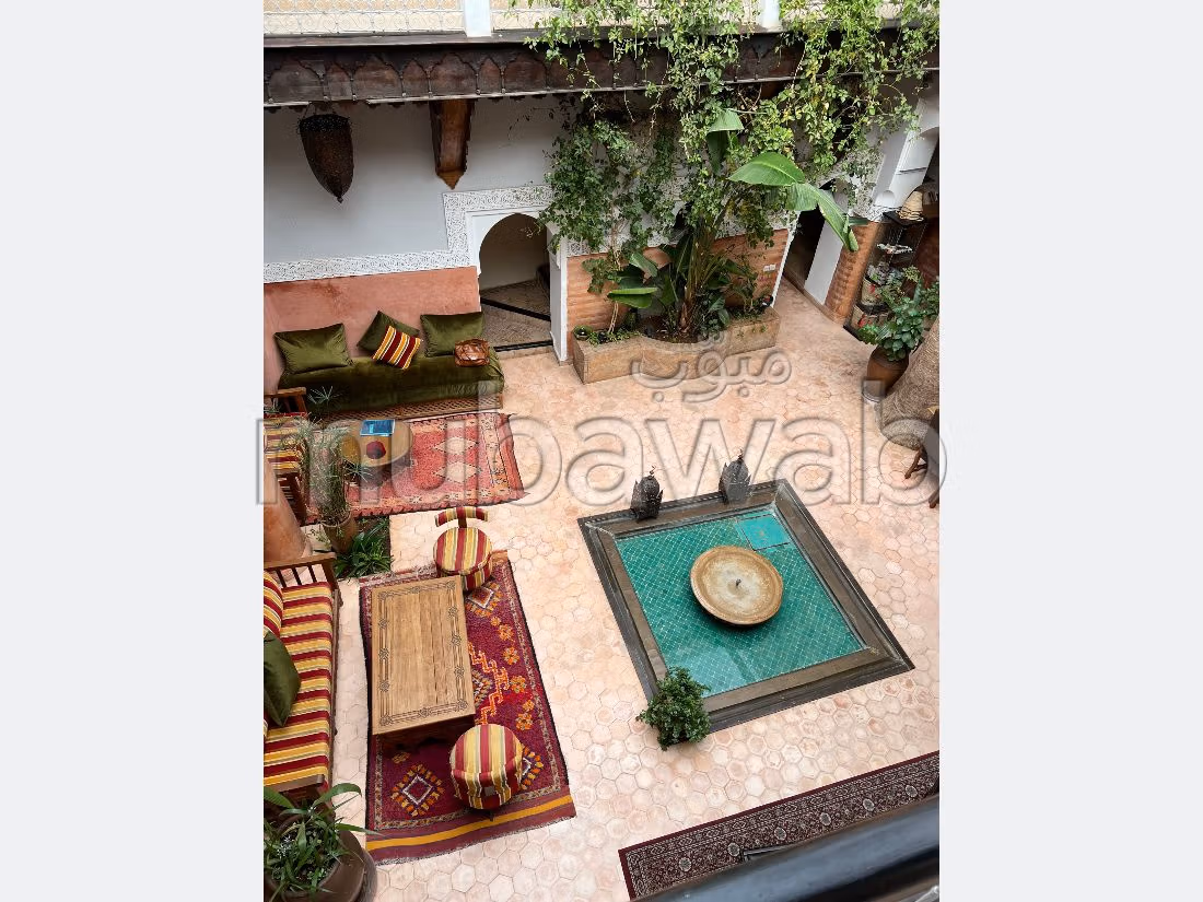 Questo riad è in vendita a Mouassine. arredato. Dotato di tutti i comfort, tra cui la piscina, l'aria condizionata e il camino. La sicurezza del sistema di videosorveglianza unita al comfort del tradizionale salotto marocchino.