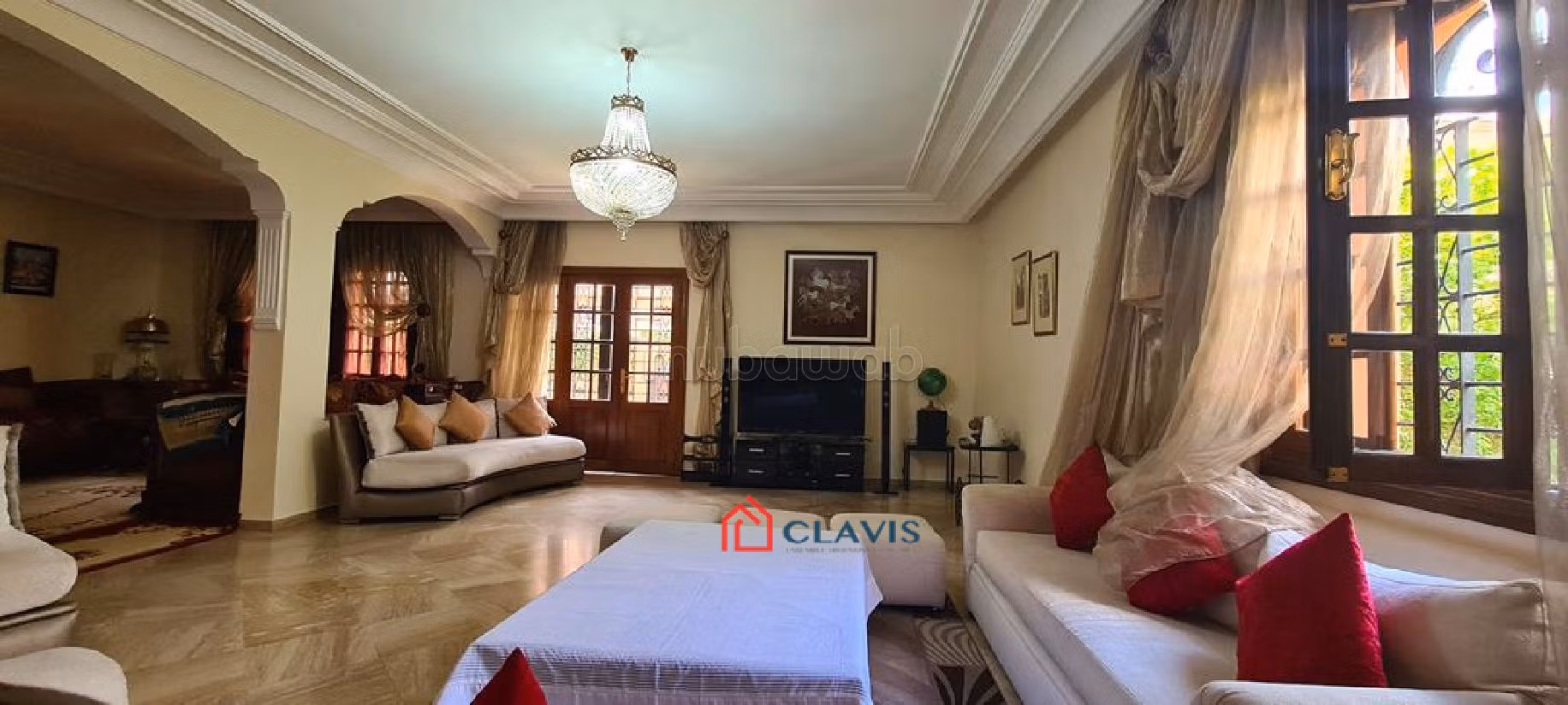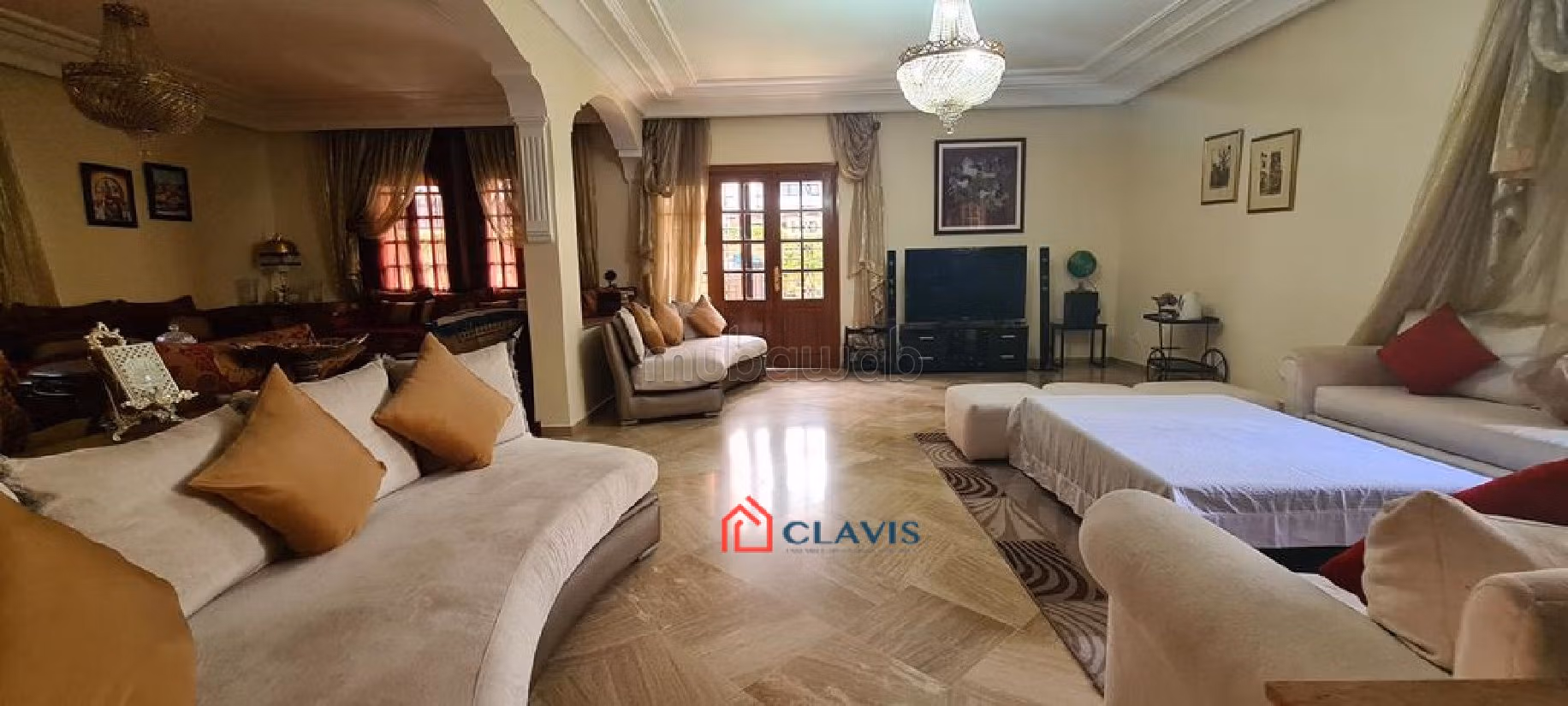 Incantevole villa in vendita. Prezzo 6 500 000 DH. 4 camere da letto, 4 bagni, 450 m². 7 locali. Meno di 20 anni. Tipo di pavimento: Marmo. Completo di ogni comfort, tra cui uno splendido giardino e un terrazzo.