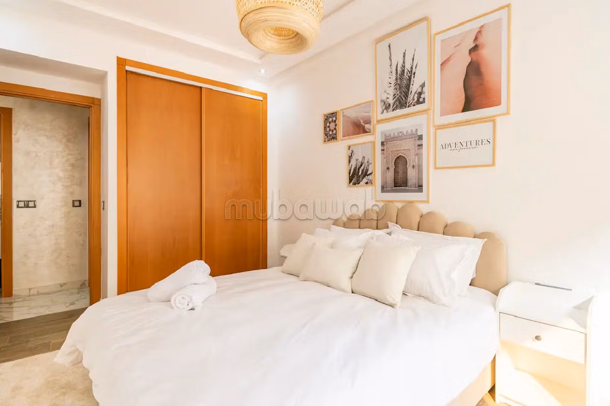 Affitta il tuo appartamento ideale. Prezzo 700 DH. 2 locali, 2 bagni, superficie di 70 m². 1 camera. 2º piano. Nuovo. Rivestimento: Piastrellato. Minimo notti 1. Comfort e sicurezza con l'antenna parabolica e il sistema di sicurezza.