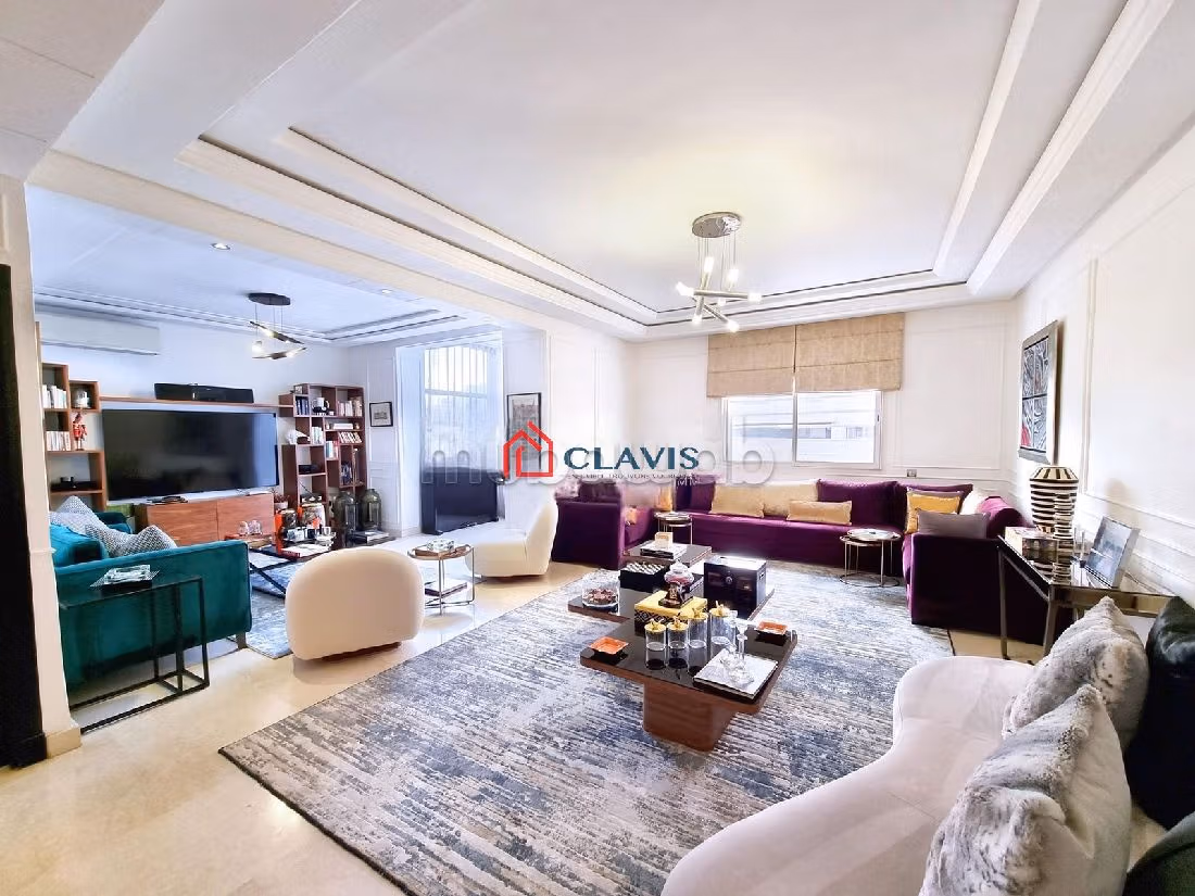 Scopri questo splendido appartamento in affitto. Prezzo 25 000 DH. 3 camere, 3 bagni, superficie di 180 m². 5 locali luminosi. 4º piano. Meno di 20 anni. Tipo di pavimento: Marmo. ammobiliato.