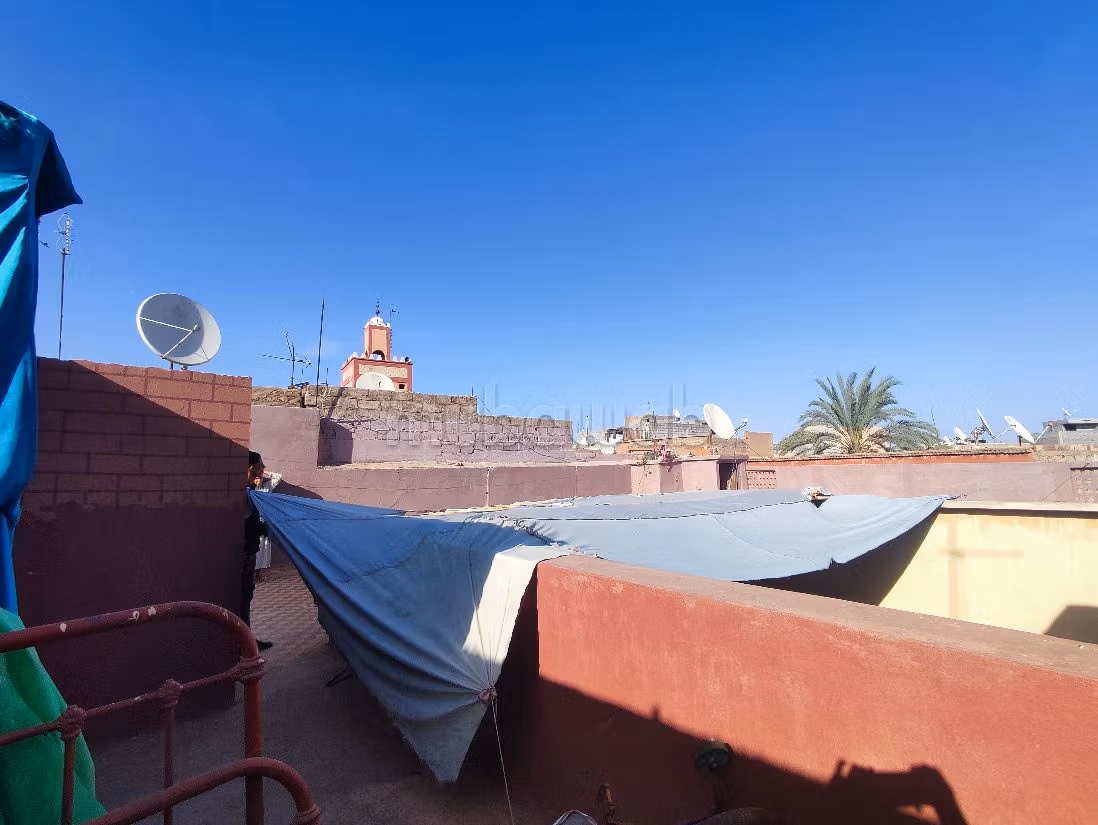 Riad in vendita in ottima zona. Prezzo 1 850 000 DH. 6 camere, 3 bagni, superficie di 147 m². 8 locali. Meno di 20 anni. Da ristrutturare. Tipo di pavimento: Piastrellato. Splendidi spazi esterni con ampio giardino e terrazzo.