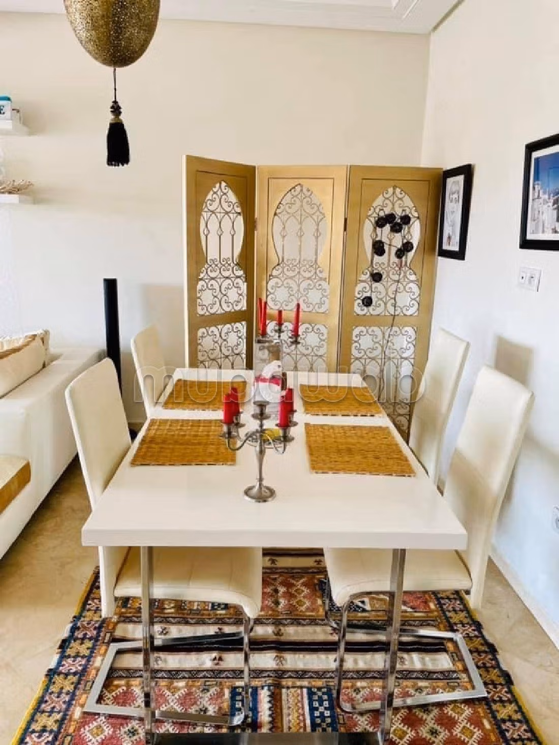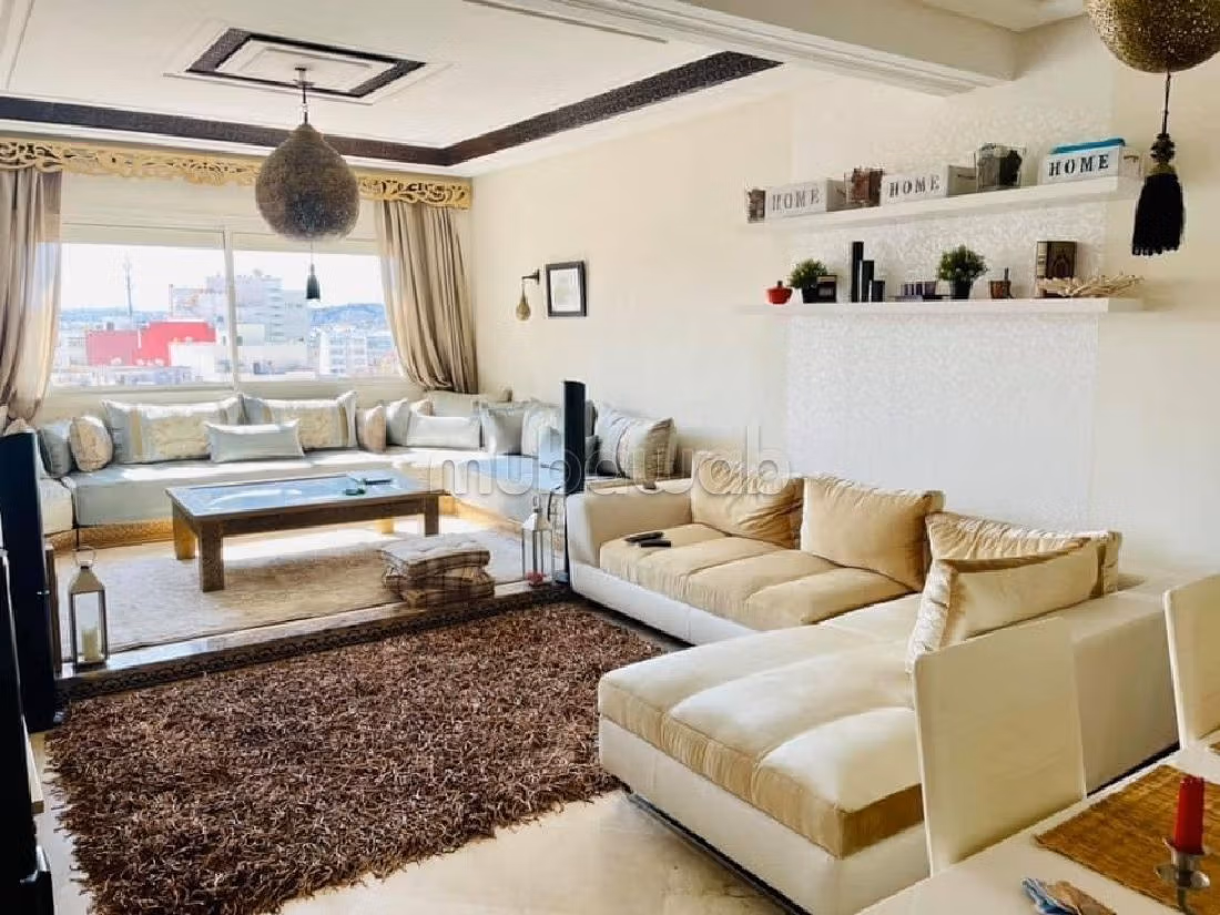 Acquista questo bellissimo appartamento. Prezzo 1 860 000 DH. 3 camere da letto, 2 bagni, 122 m². 4 locali luminosi. 6º piano. Meno di 20 anni. Rivestimento: Marmo. Goditi il comfort del salone tradizionale marocchino con parabola e la sicurezza del sistema di allarme.