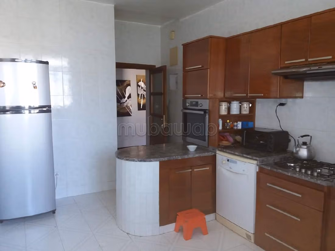 Bellissimo appartamento in vendita. Prezzo 2 795 000 DH. 4 locali, 2 bagni, 152 m². 2 camere da letto. 2º piano. Meno di 30 anni. Tipo di pavimento: In legno. Goditi il comfort del salone tradizionale marocchino e la sicurezza del sistema di allarme.