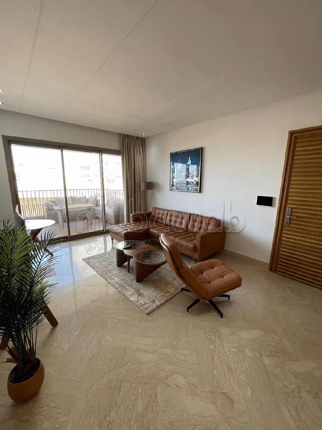 Bellissimo appartamento in affitto. Prezzo 11 000 DH. 3 locali, 2 bagni, 74 m². 1 confortevole camera da letto. 7º piano. Meno di 1 anno. Tipo di pavimento: Marmo. arredato.