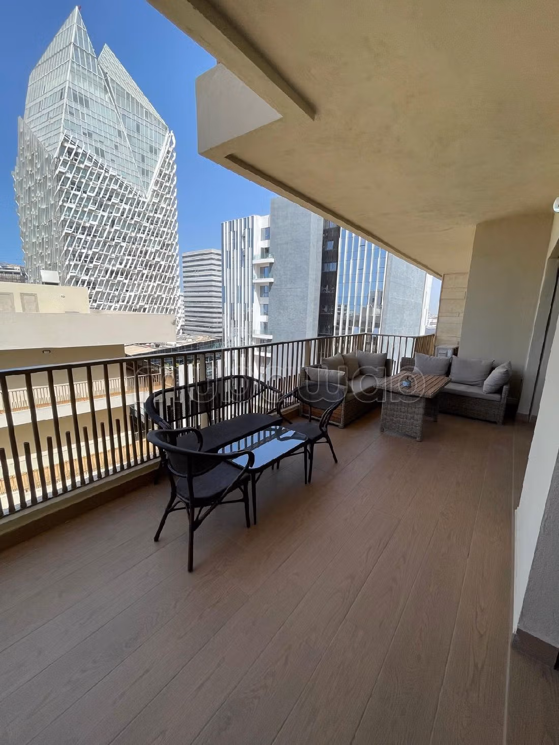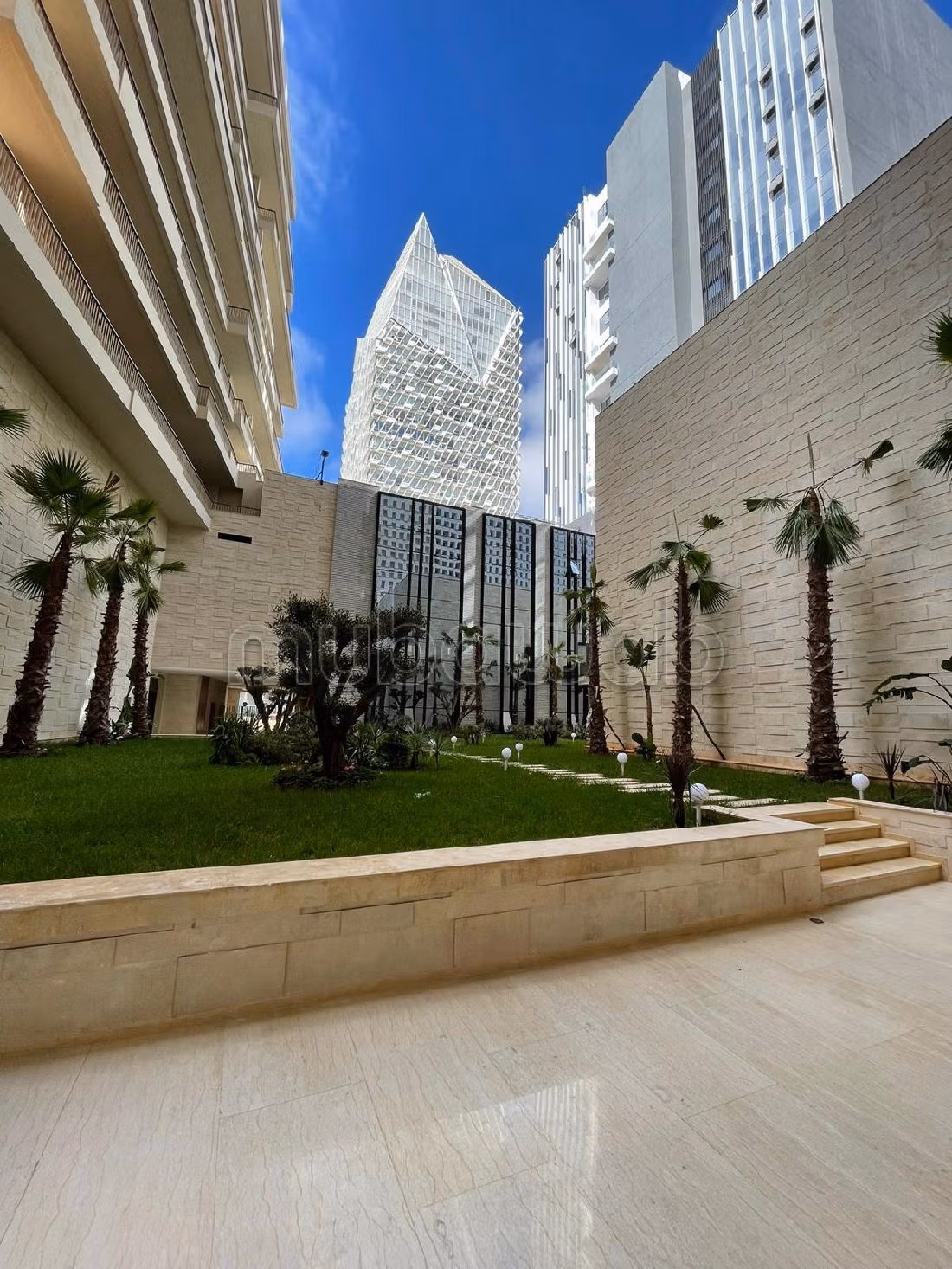 Questo appartamento è in affitto a Casablanca Finance City. Massima sicurezza grazie al servizio di concierge. Completo di tutti i comfort, tra cui piscina e aria condizionata. Dispone di ascensore, terrazzo e un bellissimo giardino.