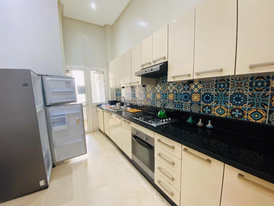 Appartamento in affitto in un'ottima zona. Prezzo 11 000 DH. 4 locali e 2 bagni, 120 m². 3 camere. Meno di 5 anni. Rivestimento: Marmo. ammobiliato.