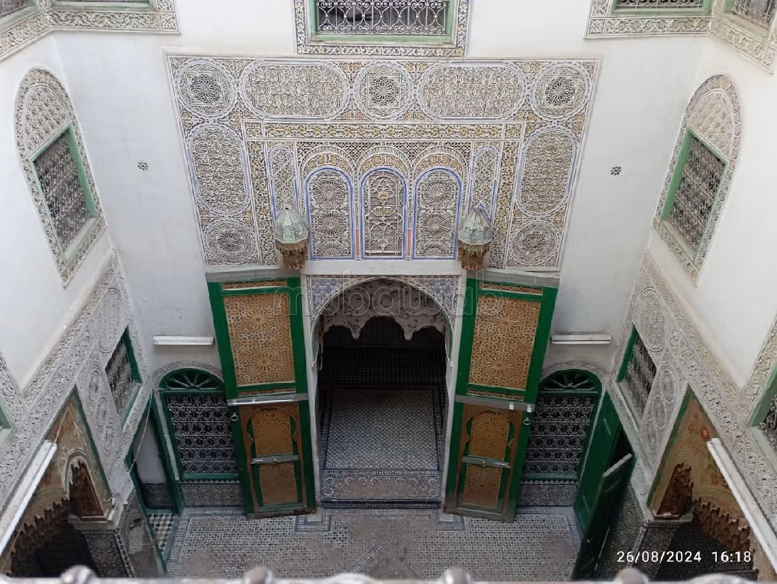 Questo riad è in vendita a Zekak Erroumane, Fès. Balcone di grandi dimensioni.