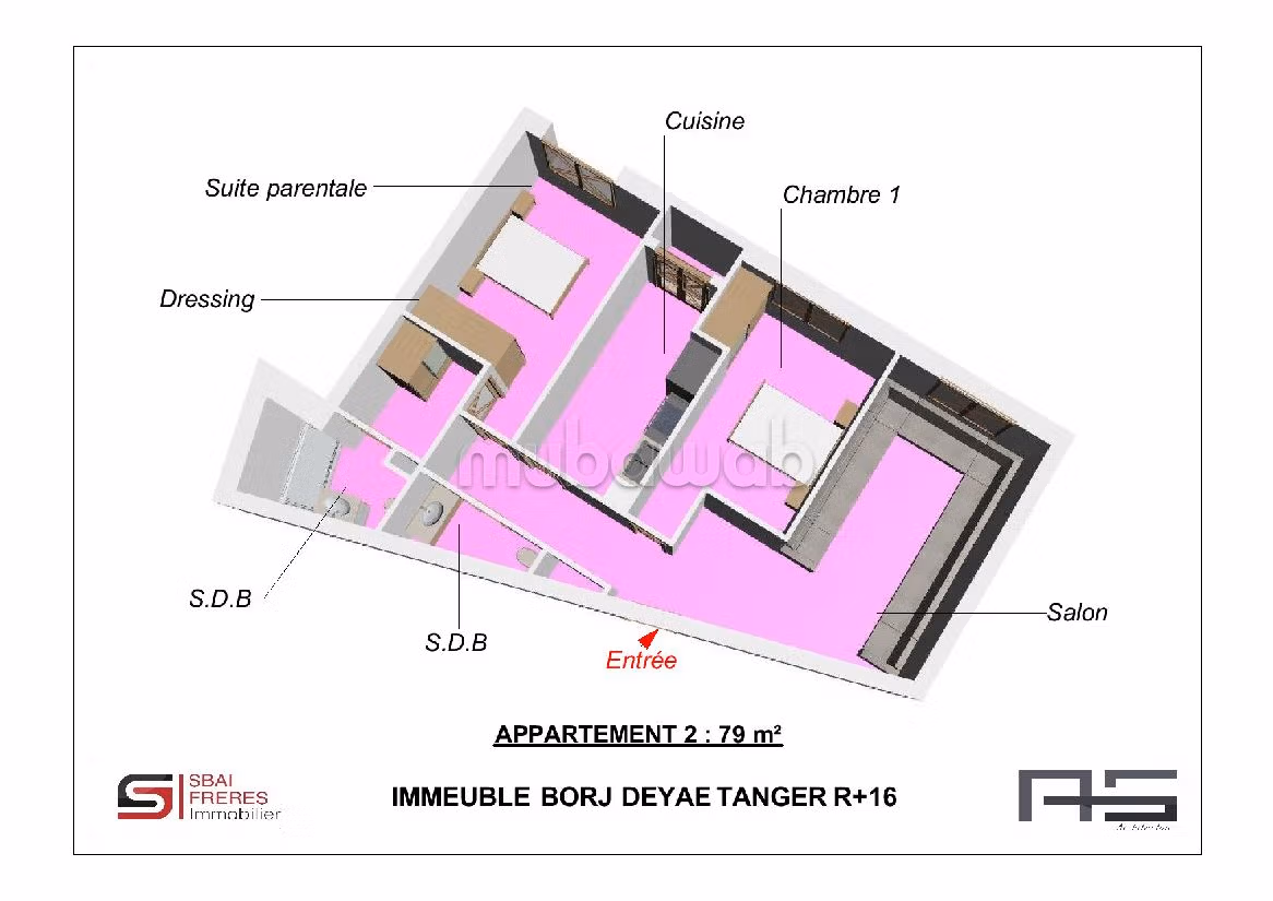 Vieni a vedere questo appartamento in vendita a Tanger City Center. Dotato di un bellissimo terrazzo e dell'ascensore. Cucina equipaggiata.