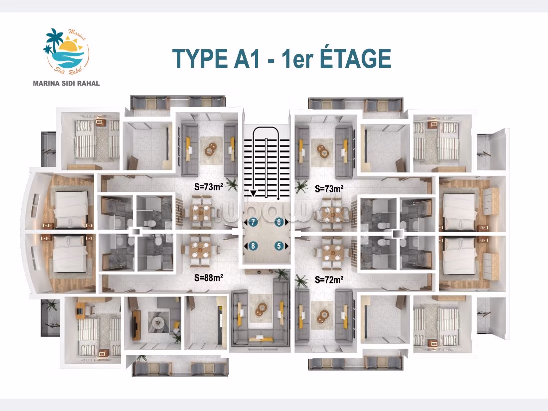 Acquista il tuo appartamento. Prezzo 11 500 DH. 3 locali e 2 bagni, 94 m². 2 camere da letto. Nuovo. Rivestimento: Piastrellato. Completo di ogni comfort grazie al garage, il terrazzo e lo splendido giardino.