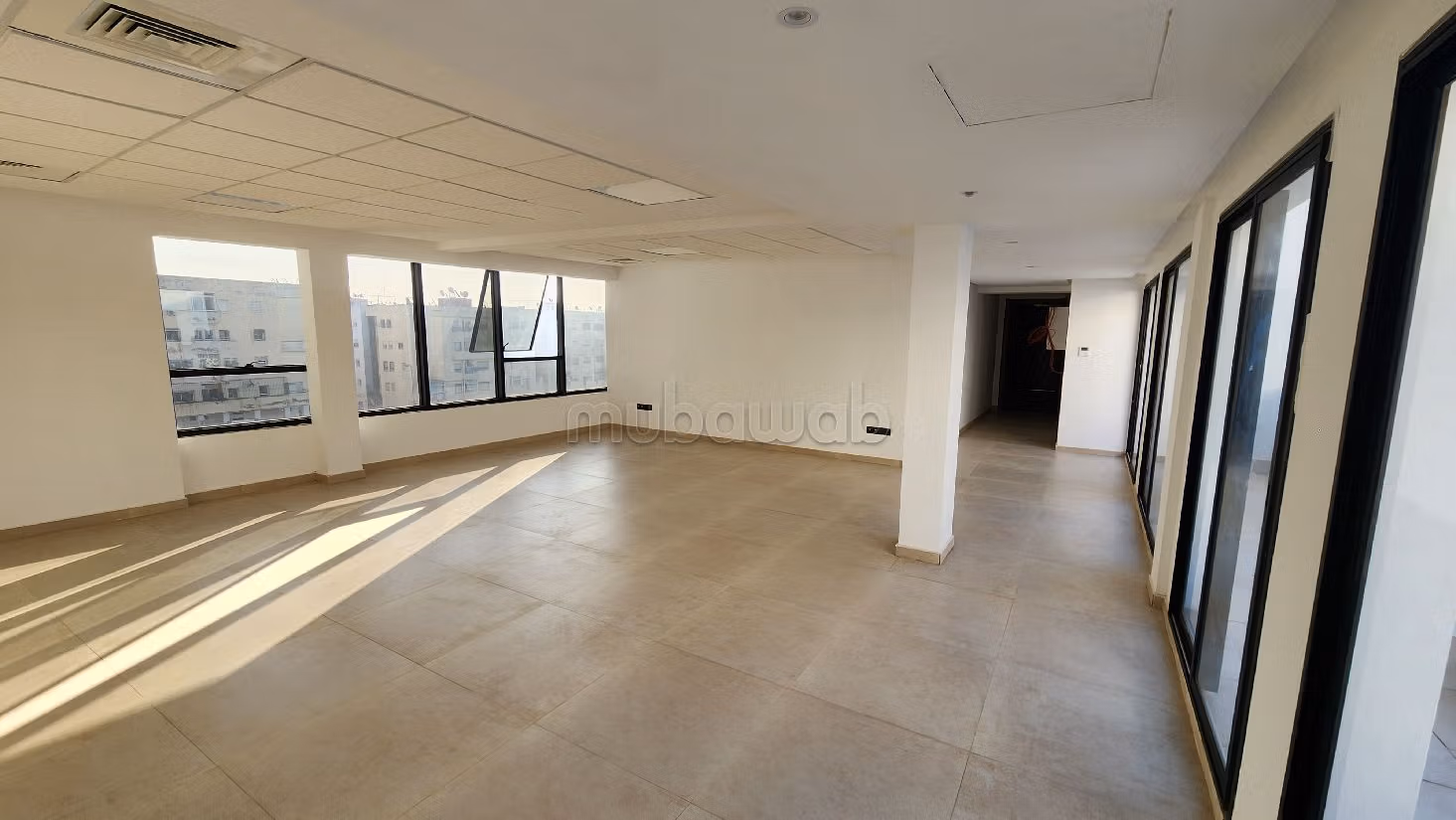 Wacht niet te lang: deze kantoorruimte is nu te huur.. Prijs 8 500 DH. 1 badkamer, oppervlakte van 82 m². 4e Verdieping. Minder dan 1 jaar. Type grond Tegel. Deze accommodatie is volledig uitgerust met airconditioning en u kunt gebruikmaken van een conciërge.