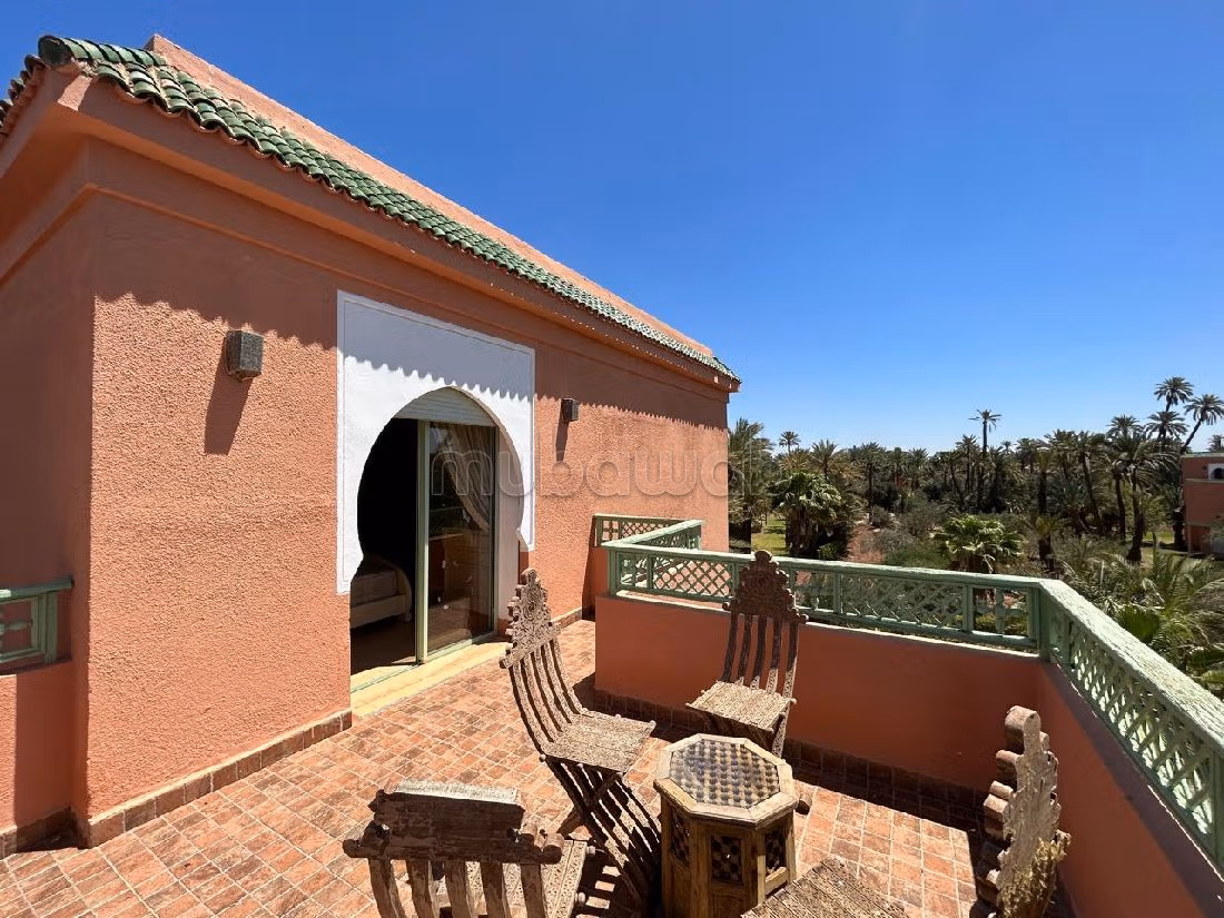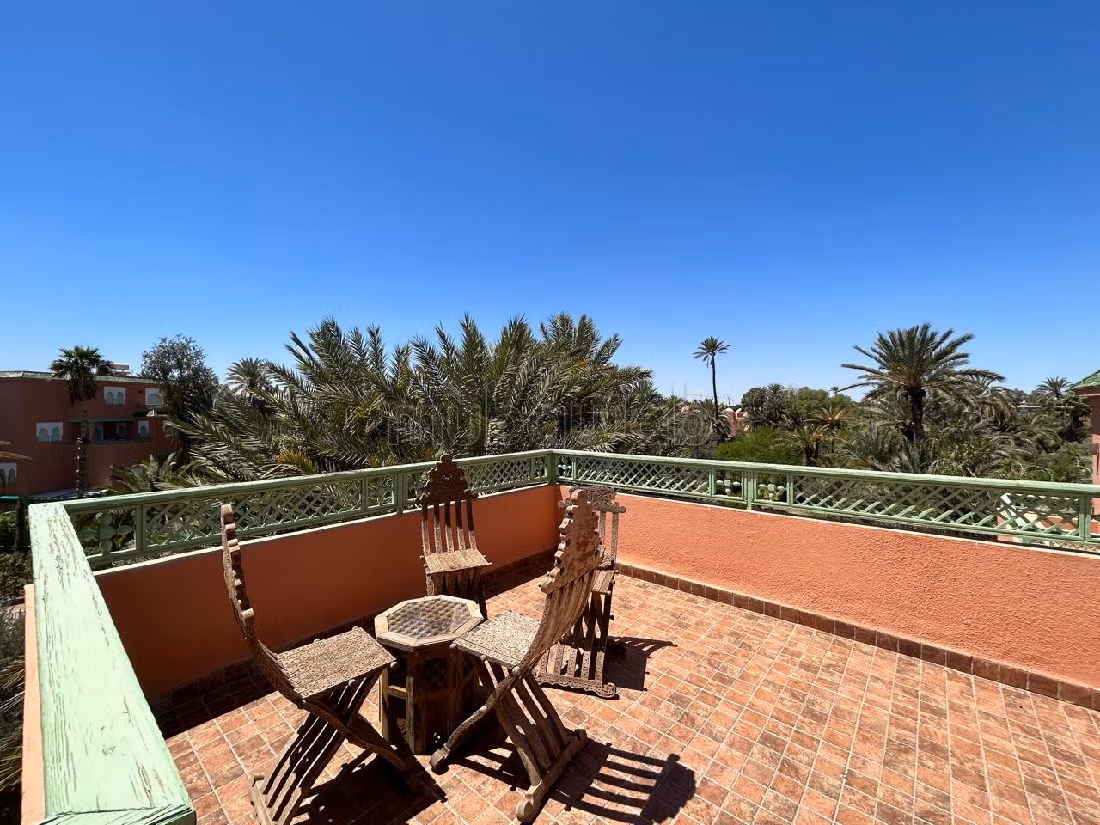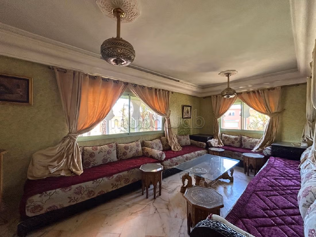 Dit appartement is te koop in Ennakhil (Palmeraie). Alle comfort die u nodig hebt met een eigen garage en een mooi terras. woonkamer met Marokkaanse inrichting.