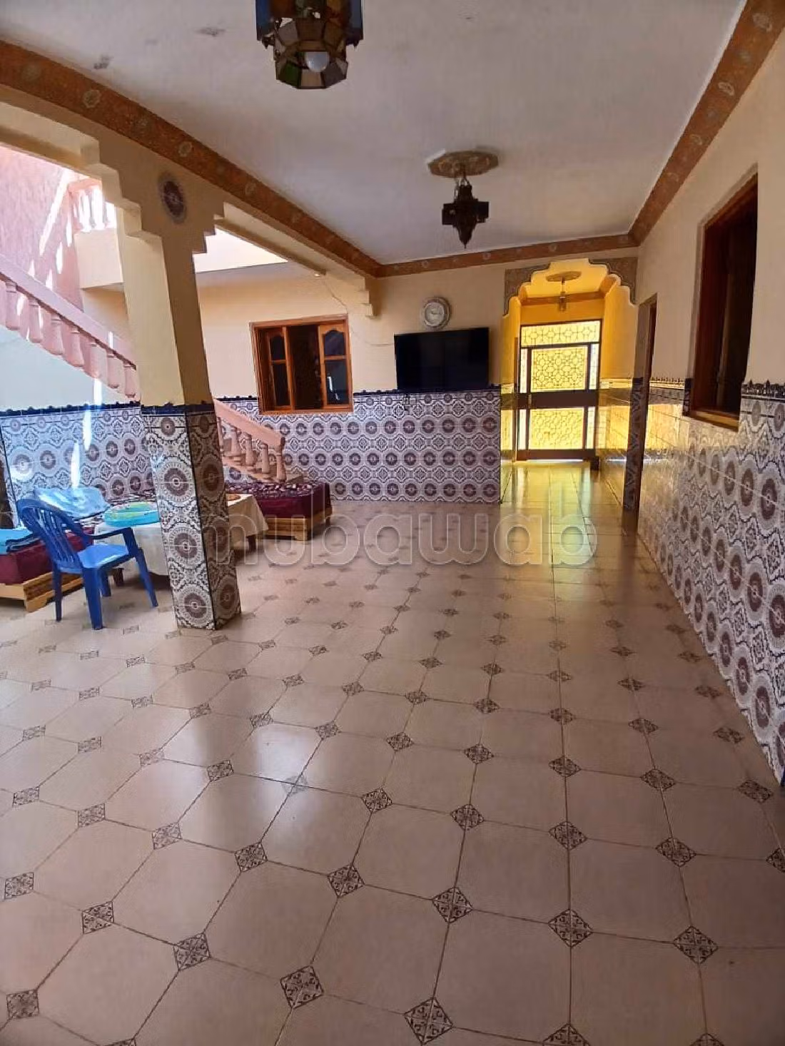 Plan nu uw bezoek aan dit bijzondere huis. woonkamer met Marokkaanse inrichting. Koken is een eitje in deze volledig uitgeruste keuken.